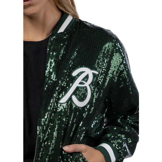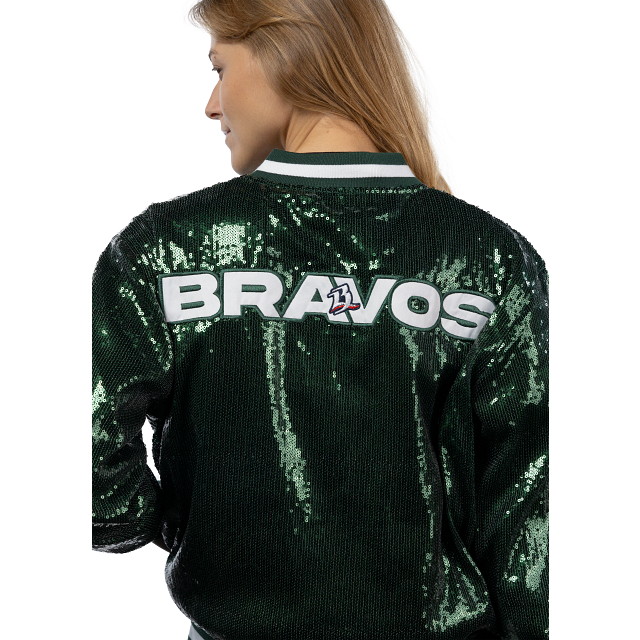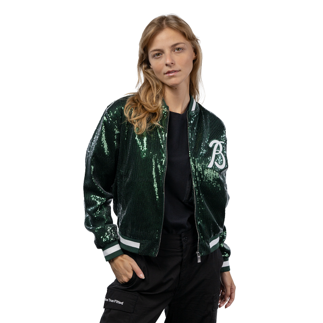 Esta Chamarra New Era de Bravos de León de la colección LMB Sequins con lentejuelas en color verde presenta el logo de los Bravos en el costado izquierdo, forro interior transpirable, es el complemento perfecto para mostrar tu pasión por el deporte nacional de México. Cómprala ya.