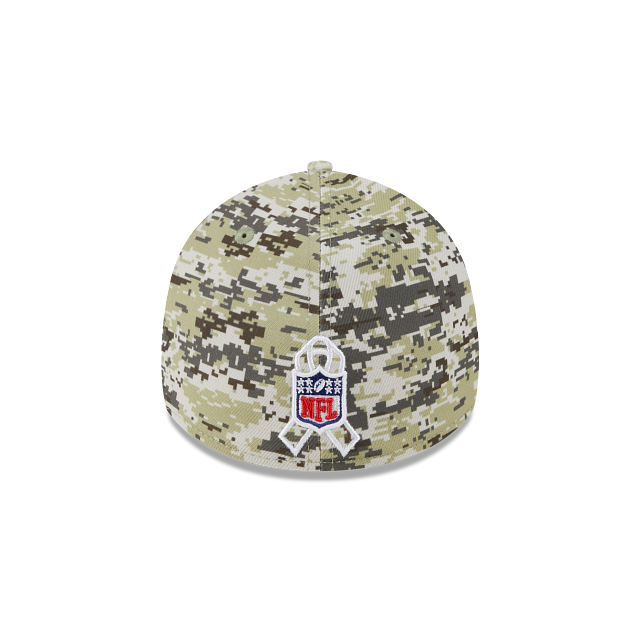 Esta gorra New Era 39THIRTY de Dallas Cowboys de la colección NFL Salute to Service 2023 presenta un diseño en camuflaje con el logotipo de los Cowboys bordado en los paneles frontales, la bandera de Estados Unidos del lado derecho, el undervisor del color del equipo, el logo de la NFL al reverso y el flag de New Era bordado en el lado izquierdo. Cómprala ya.