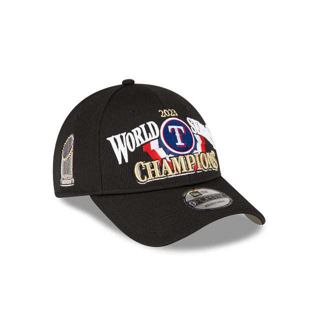 Celebra el campeonato de Texas Rangers con esta gorra New Era 9FORTY con diseño especial de la MLB World Series Champs 2023, el logotipo de los Rangers en los paneles frontales, el Commissioner's Trophy del lado derecho y el flag de New Era bordado en el lado izquierdo. ¡No te pierdas este artículo de colección!