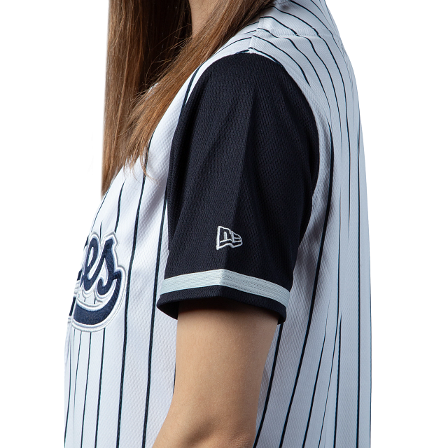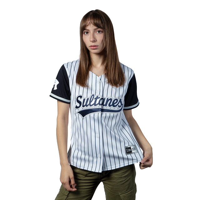 Este Jersey New Era para Mujer de Sultanes de Monterrey de la colección LAMP, presenta el nombre de los Sultanes bordado en la parte de enfrente, el logotipo de Sultanes bordado de lado derecho, detalles a rayas, y el flag de New Era bordado en el lado izquierdo. Apoya a tu equipo y cómprala ya