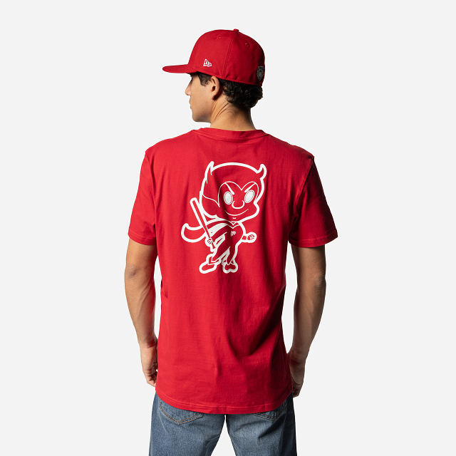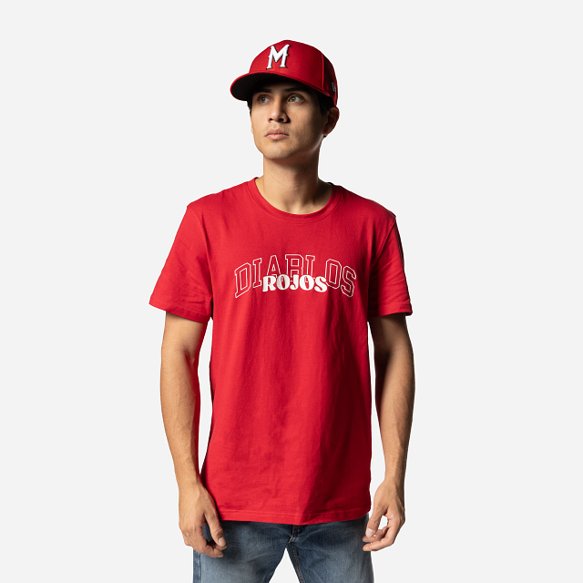Apoya a tu equipo favorito con estilo con esta Playera Manga Corta de Diablos Rojos del México de la colección LMB Invenue que presenta un diseño en color rojo con el nombre de Diablos estampado en la parte de en frente, Ramoncito en la espalda y el flag de New Era bordado en la manga izquierda. ¡Dale un toque a tu outfit y cómprala ya!