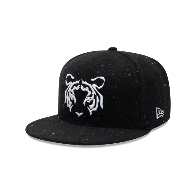 Gorras planas New Era en la silueta 59FIFTY de la colección LMX Splatter Wool con diseños de salpicaduras y confección en lana.