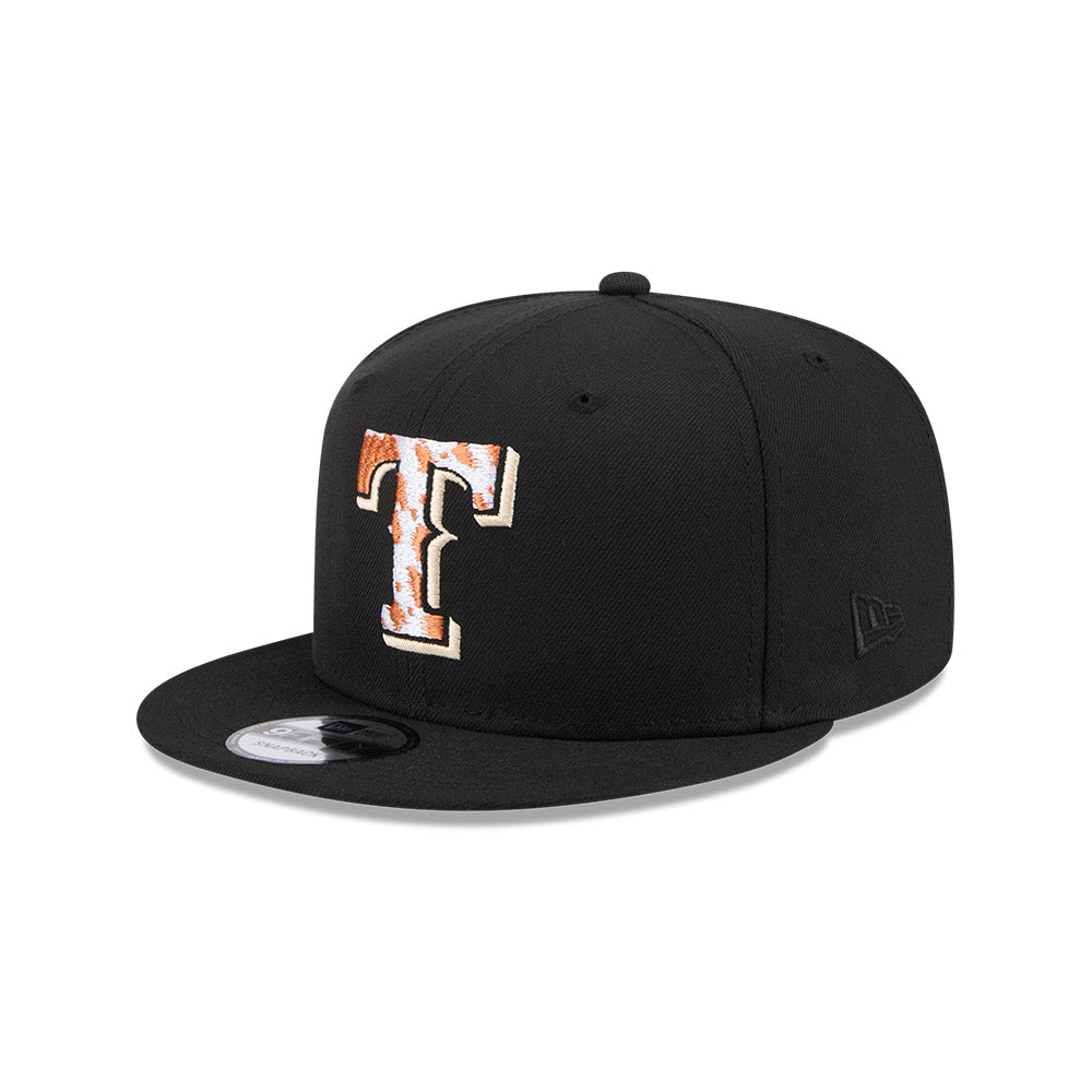 Esta gorra New Era 9FIFTY de Texas Rangers de la colección MLB Animal Fill presenta un diseño negro con el logotipo de los Rangers con detalles de animales bordado en los paneles frontales, un parche conmemorativo del lado derecho y el flag de New Era bordado en el lado izquierdo. Luce con estilo y cómprala ya.
