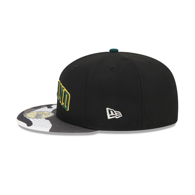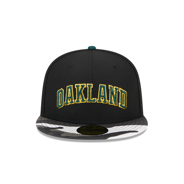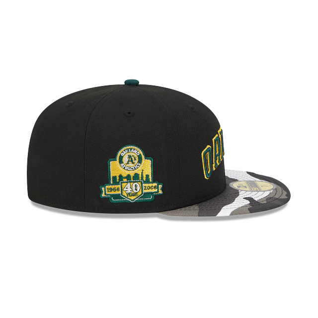 Esta gorra New Era 59FIFTY de Oakland Athletics de la colección MLB Metallic Camo presenta una distintiva visera de camuflaje en tonos grises y blancos, el logotipo de los Athletics bordado en los paneles frontales de una corona negra, un parche conmemorativo del lado derecho y el flag de New Era bordado en el lado izquierdo. Luce con estilo y cómprala ya.