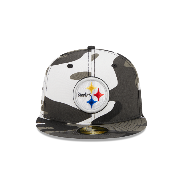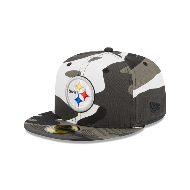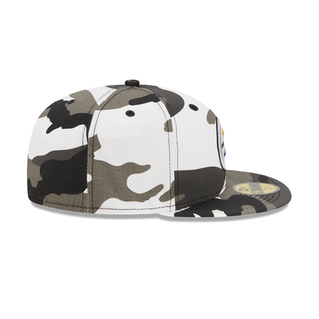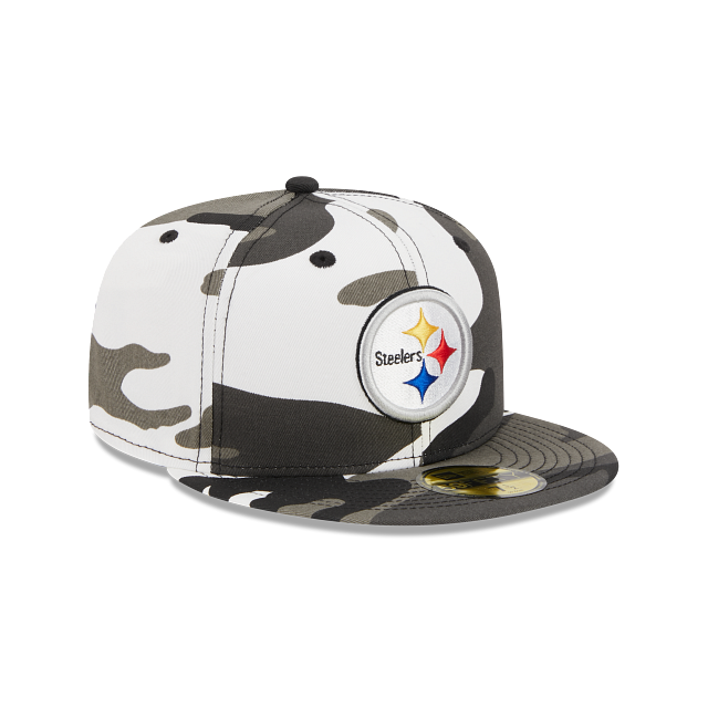 Esta gorra New Era 59FIFTY de Pittsburgh Steelers de la colección NFL Camo presenta el logo de los Steelers bordado en los paneles frontales, con una combinación de color blanco y gris y un patrón de camuflaje. Dale un toque de aventura a tu outfit. Cómprala ya.