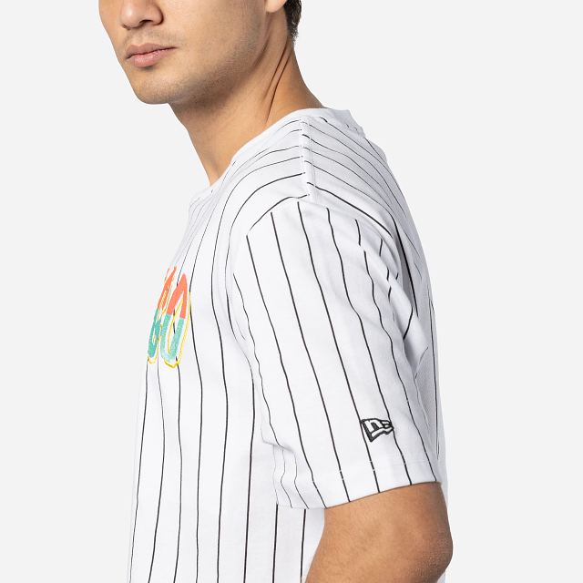 Esta Playera Manga Corta New Era de San Diego Padres de la colección MLB Throwback presenta un diseño con líneas verticales estilo pinstripe con el nombre de los Padres al frente y el logotipo al reverso, la etiqueta de autenticidad en la parte de abajo y el flag de New Era bordado en la manga izquierda. Apoya a tu equipo con estilo y cómprala ya.