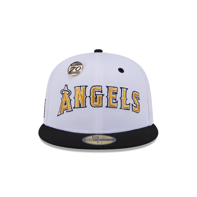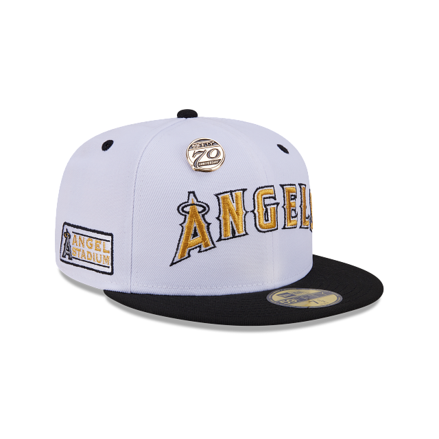 Celebra el 70 aniversario de la silueta que cambió el juego con esta gorra New Era 59FIFTY de Los Angeles Angels de la colección del New Era Cap 59FIFTY Day Collection que presenta una corona blanca con el nombre de los Angels en dorado bordado en los paneles frontales, el pin del 70 aniversario, un parche conmemorativo del lado derecho, el logo de la liga al reverso y el flag de New Era bordado en el lado izquierdo. No te pierdas este artículo de colección y cómprala ya.