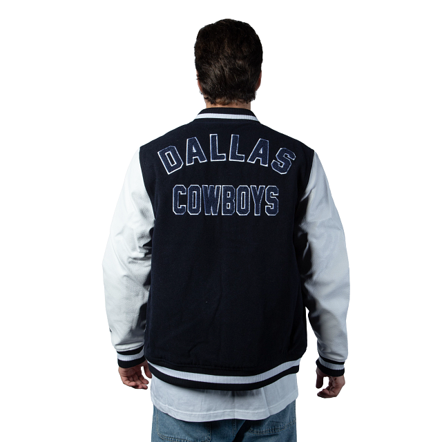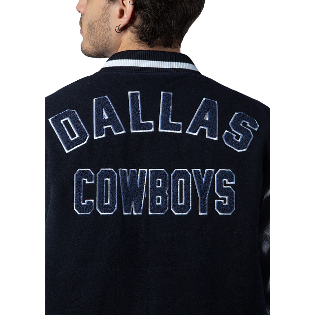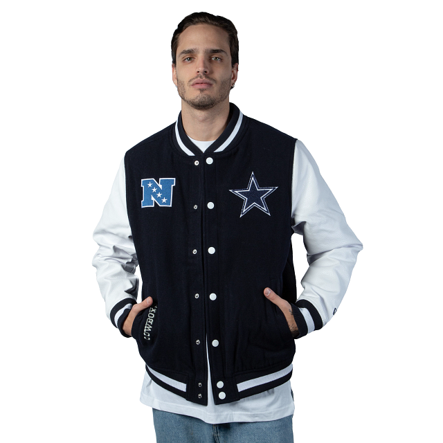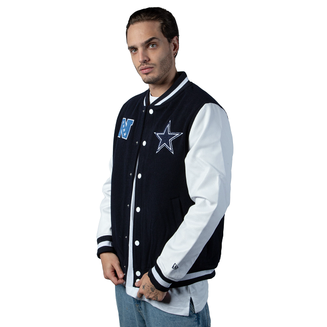 Esta Chamarra New Era de Dallas Cowboys de la colección NFL 3rd Down 2023 presenta un espectacular diseño con un toque retro con el color del equipo y un tono claro en las mangas, el logotipo de los Cowboys y la conferencia al frente, y el nombre en la espalda. Apoya a tu equipo y cómprala ya.