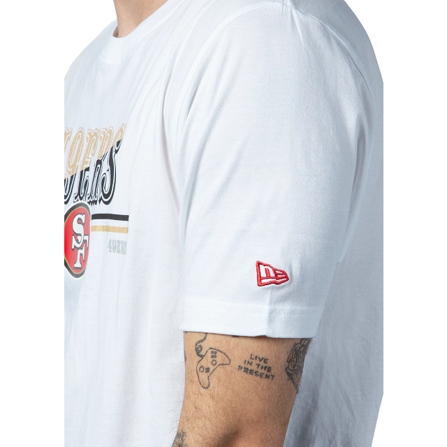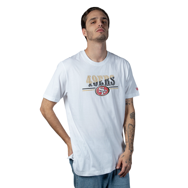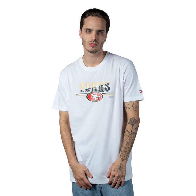 Esta Playera Manga Corta New Era de San Francisco 49Ers de la colección NFL 3rd Down 2023 presenta el logotipo y nombre de los 49Ers al frente en un diseño blanco que se hará un básico del día a día, con el flag de New Era bordado en la manga izquierda. Apoya a tu equipo y cómprala ya.