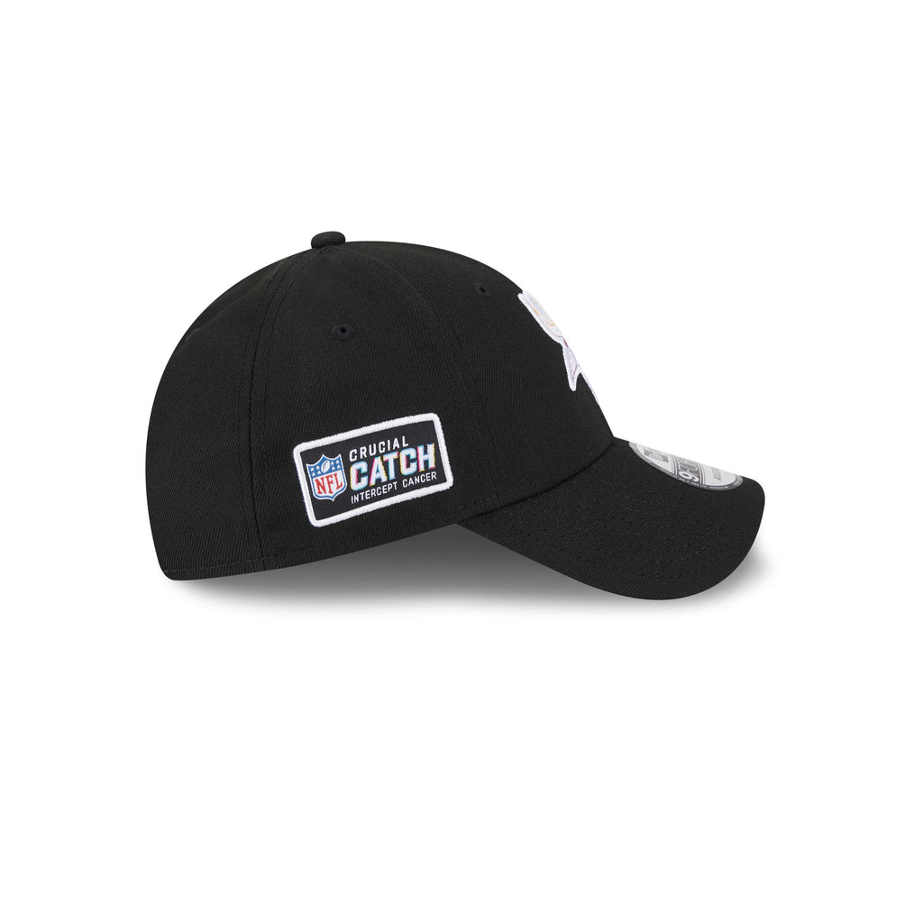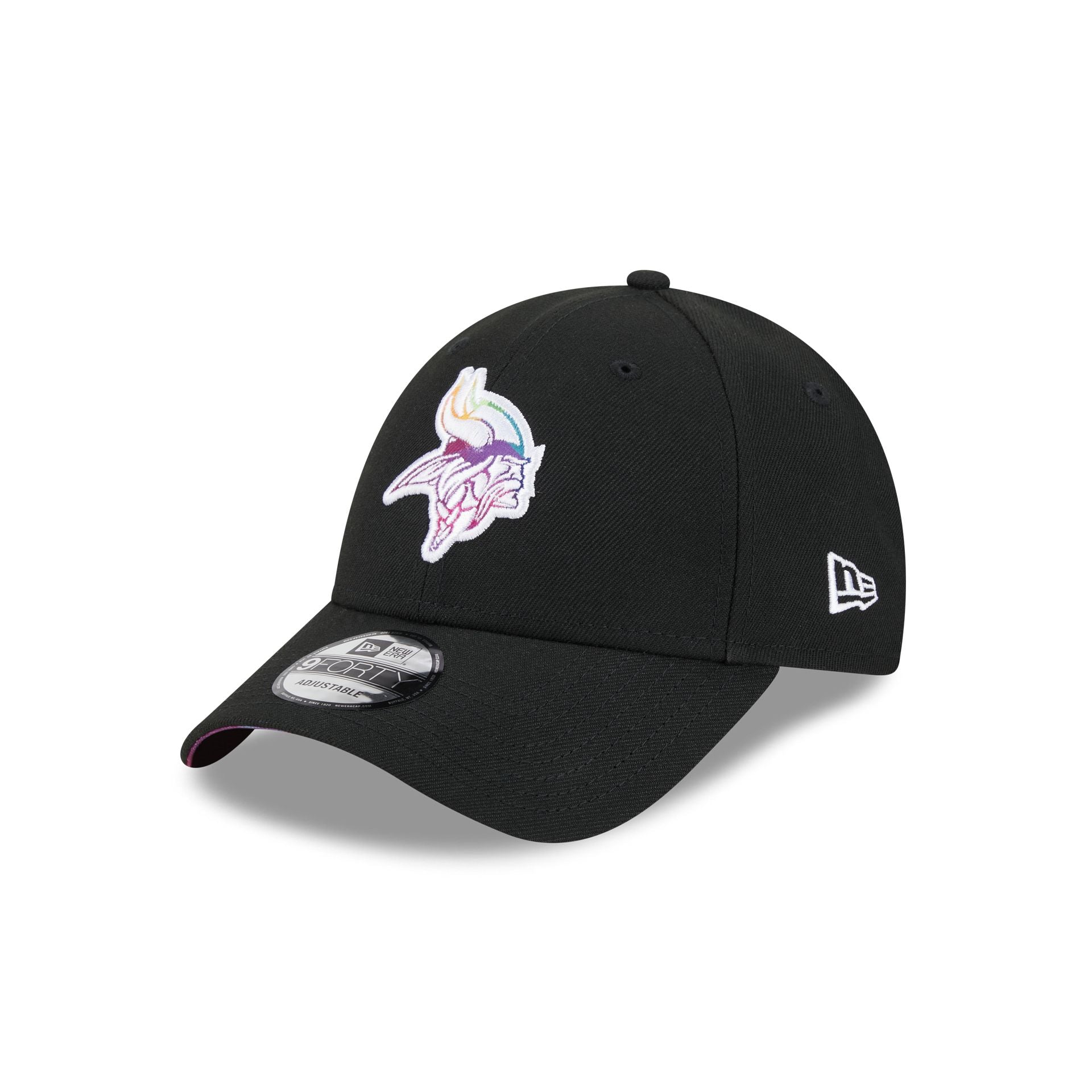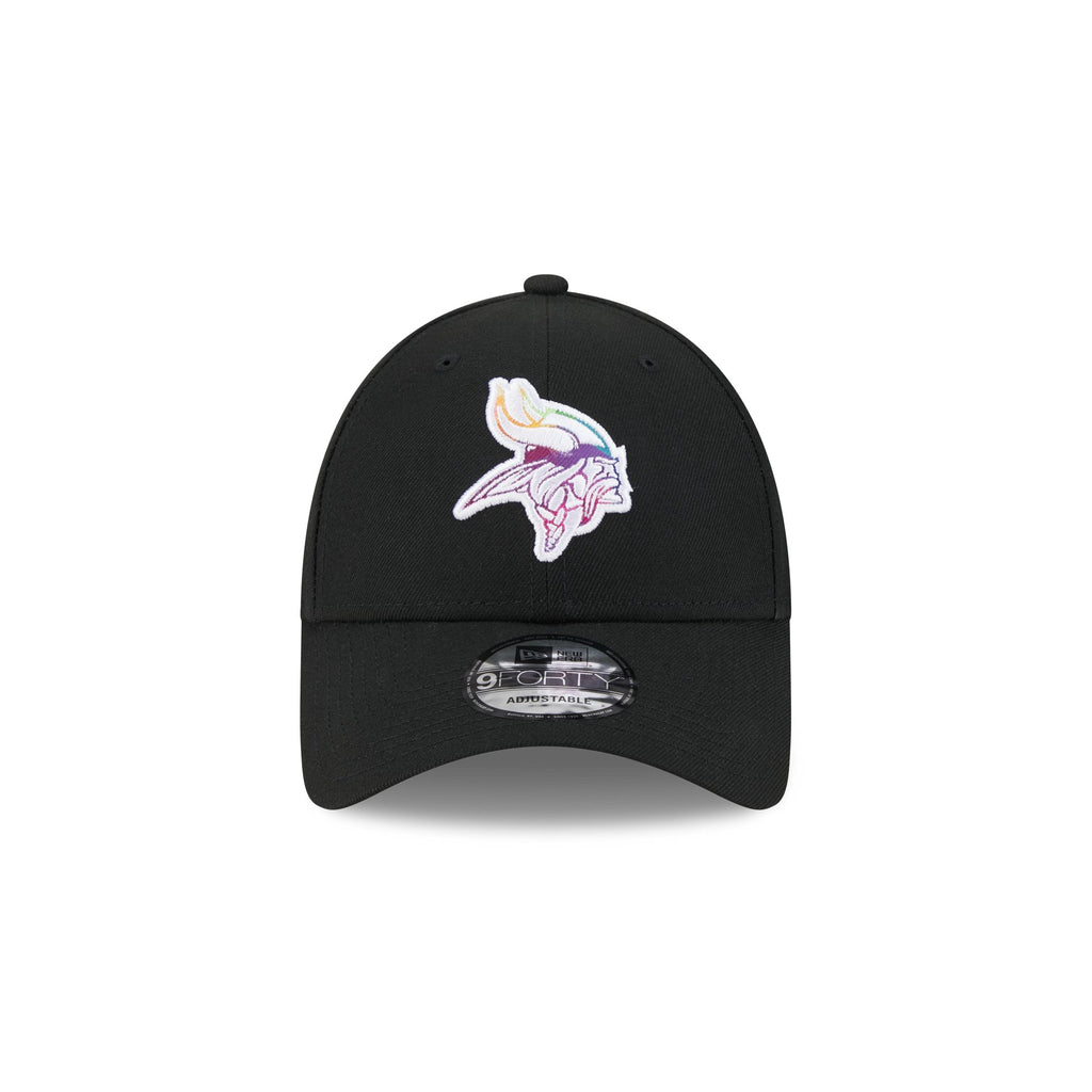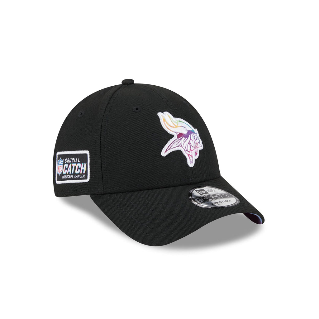 Esta gorra New Era 9FORTY de Minnesota Vikings de la colección NFL Crucial Catch 2023 presenta un diseño totalmente negro que contrasta con el logotipo de los Vikings y el undervisor con toques multicolor, y el flag de New Era bordado en el lado izquierdo. Apoya a tu equipo y cómprala ya.