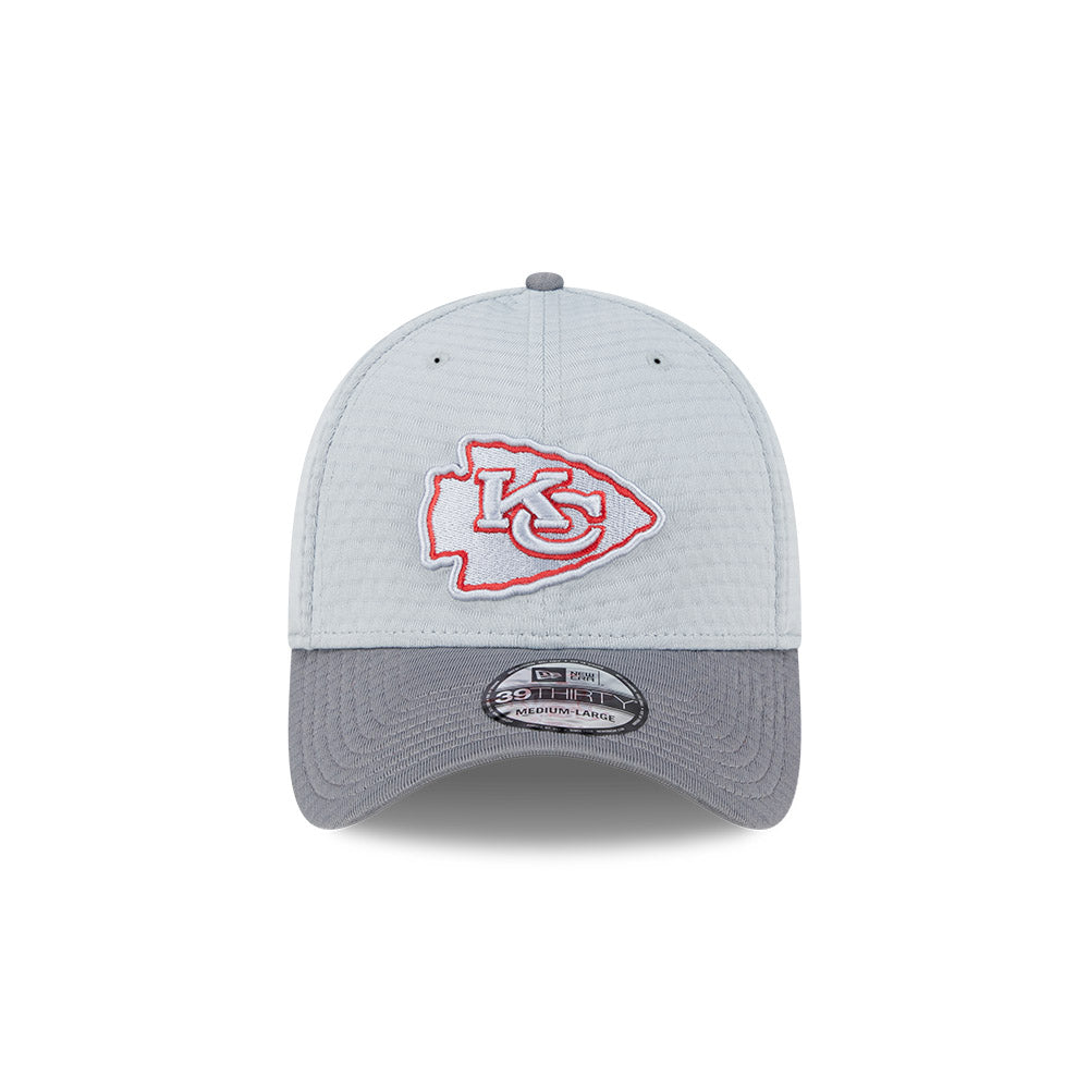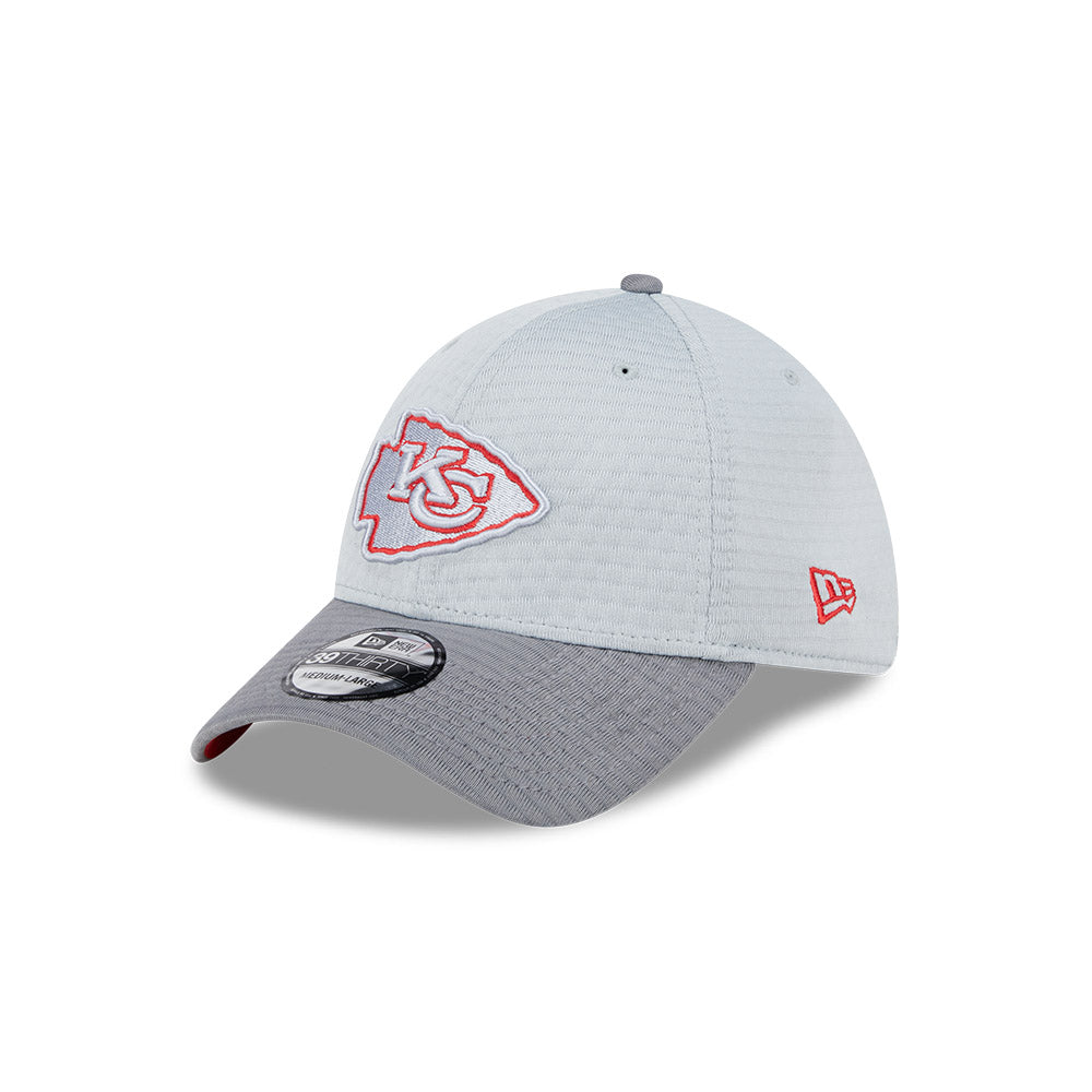Esta gorra New Era 39THIRTY de Kansas City Chiefs de la colección NFL Training Collection 2024 presenta un diseño en gris con el logotipo de los Chiefs bordado en los paneles frontales, el logo de la NFL en la parte trasera, el undervisor del color emblemático del equipo y el flag de New Era bordado en el lado izquierdo. ¡Empieza a apoyar a tu equipo y cómprala ya!