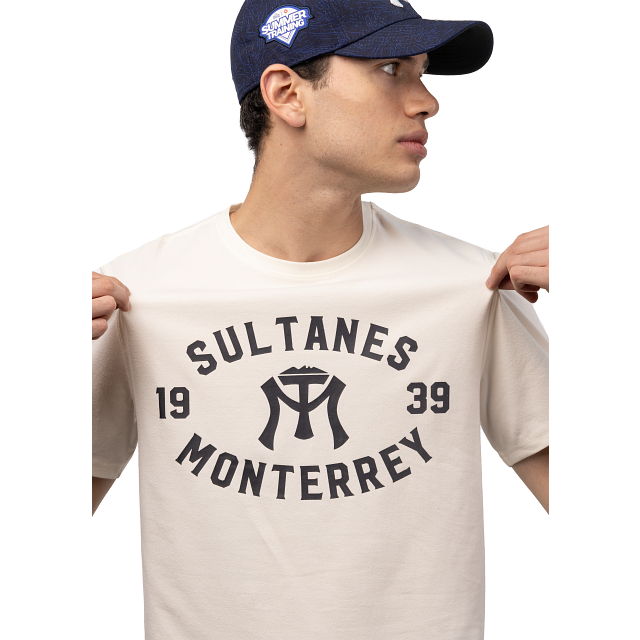 Esta Playera Manga Corta New Era de los Sultanes de Monterrey de la colección LAMP Fan Gear presenta el logotipo, nombre y año de fundación de los Sultanes al frente abarcando el pecho, un detalle al reverso, y el flag de New Era bordado en la manga izquierda. Apoya a tu equipo y cómprala ya