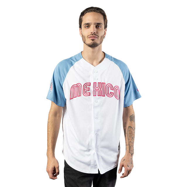 El Jersey alternativo New Era de México conmemora la gran participación de México en el World Baseball Classic del 2023, con un parche en la manga derecha con el texto Actuación Histórica. No te quedes sin el tuyo.