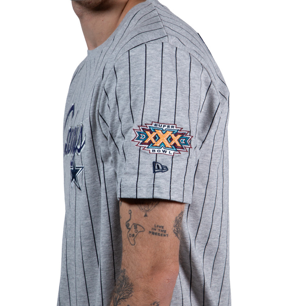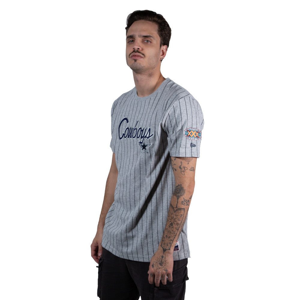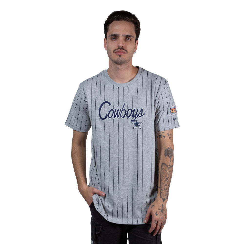 Esta Playera Manga Corta New Era de Dallas Cowboys de la colección NFL Throwback presenta un diseño gris retro con rayas, el logotipo y nombre de los Cowboys estampado al frente, el año del equipo en la espalda, y la etiqueta retro de New Era. Dale un toque a tu outfit y cómprala ya
