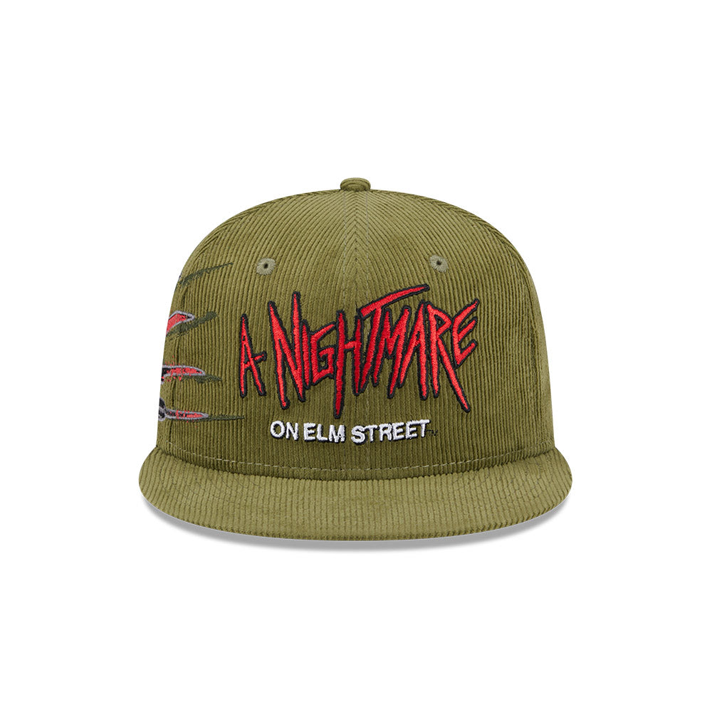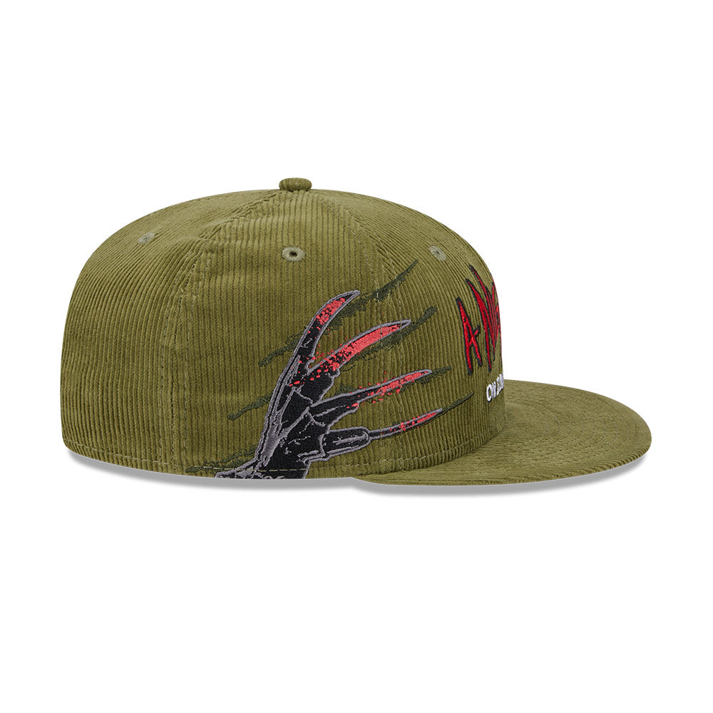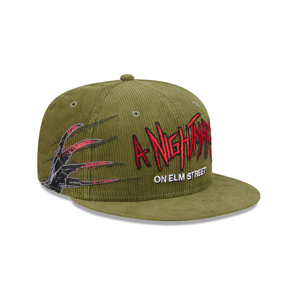 Esta gorra plana New Era 59FIFTY de la colección Horror Movies presenta un diseño en pana con el nombre de la película A Nightmare on Elm Street bordada en los paneles frontales, las garras de Freddy Krueger del lado derecho y el flag de New Era bordado del lado izquierdo. Cómprala ya.