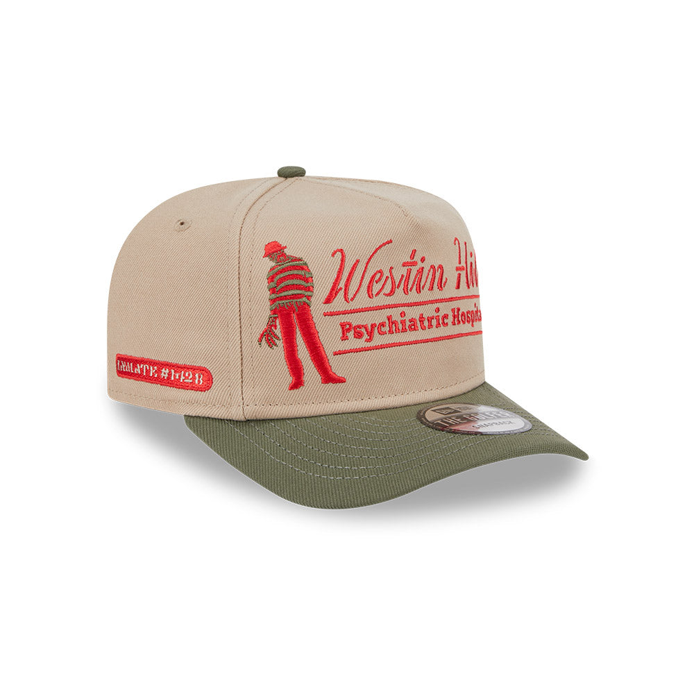 Esta gorra curva New Era Golfer de la colección Horror Movies presenta un diseño con Freddy Krueger bordado en los paneles frontales junto con el nombre Westin Hills, el nombre de Springwood Asylum al reverso y el flag de New Era bordado del lado izquierdo. Cómprala ya.