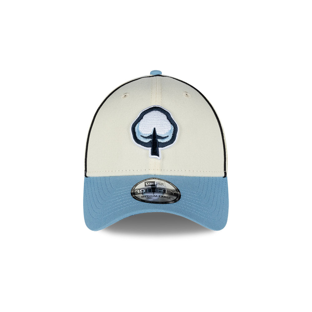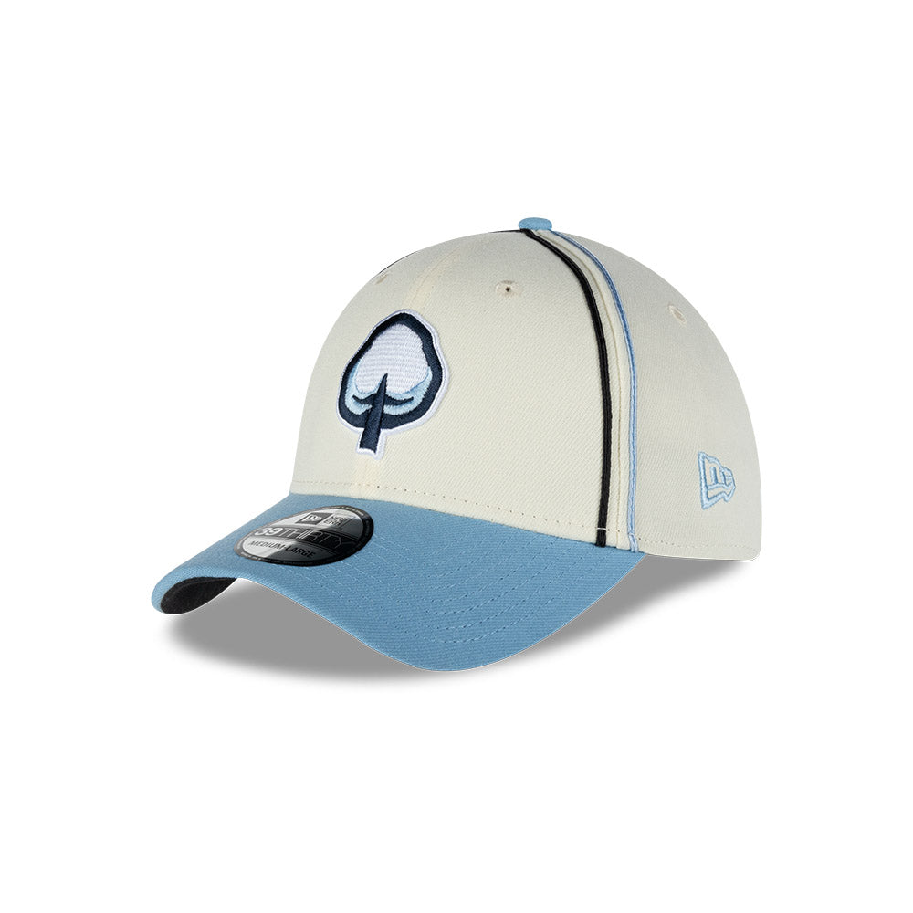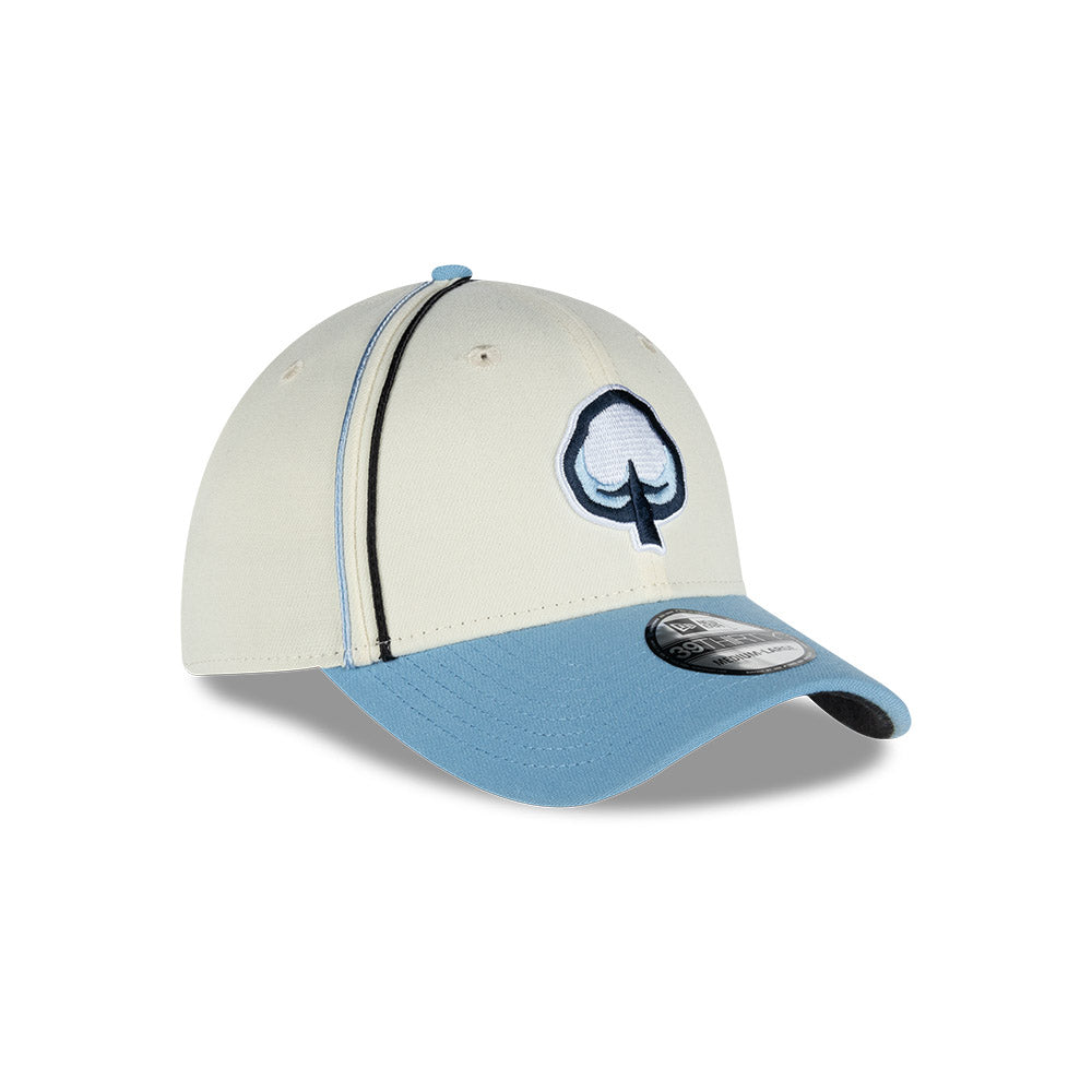 Esta gorra curva New Era 39THIRTY de Algodoneros de Guasave de la colección LAMP Game Caps 2024 presenta un diseño con el logotipo de los Algodoneros bordado en los paneles frontales, el logo de la LAMP al reverso y el flag de New Era bordado del lado izquierdo. Cómprala ya.