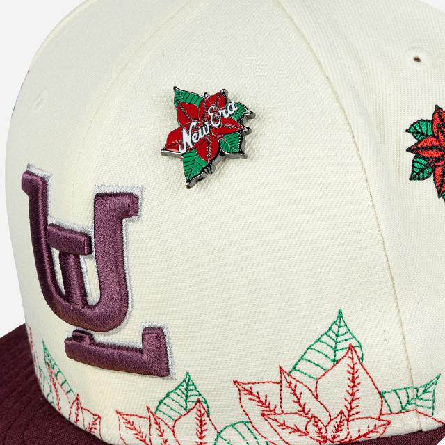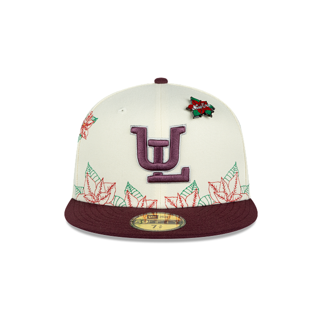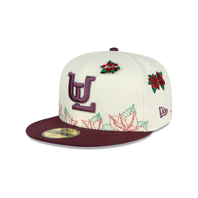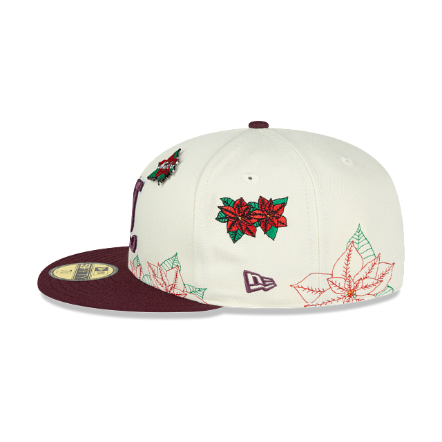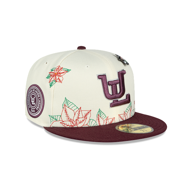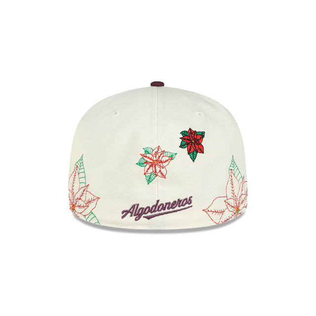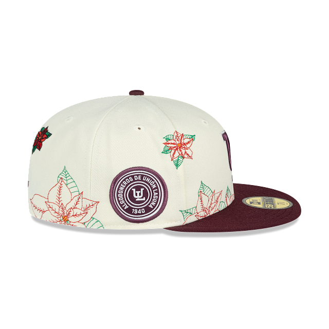 Esta gorra plana New Era 59FIFTY de Algodoneros de Unión Laguna de la colección LMB Nochebuena presenta un diseño con el logotipo de los Algodoneros bordado en los paneles frontales junto con un pin en forma de flor de nochebuena, hojas de nochebuena en toda la corona, un parche representativo del equipo del lado derecho, el nombre del equipo al reverso y el flag de New Era bordado del lado izquierdo. Cómprala ya.