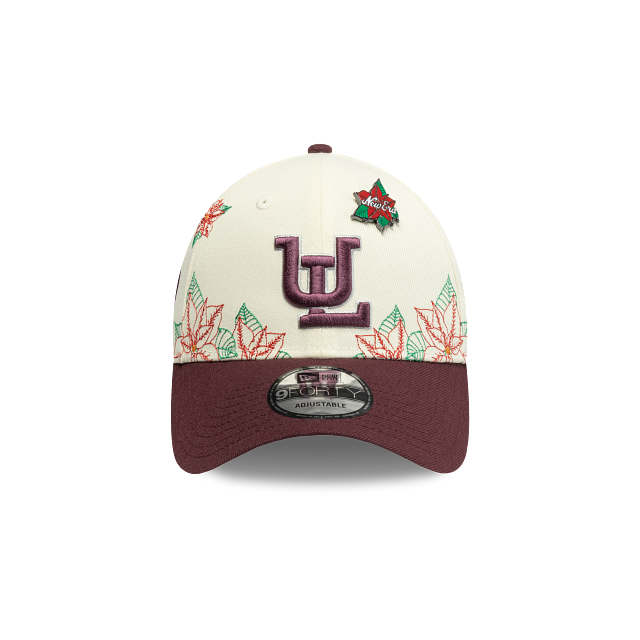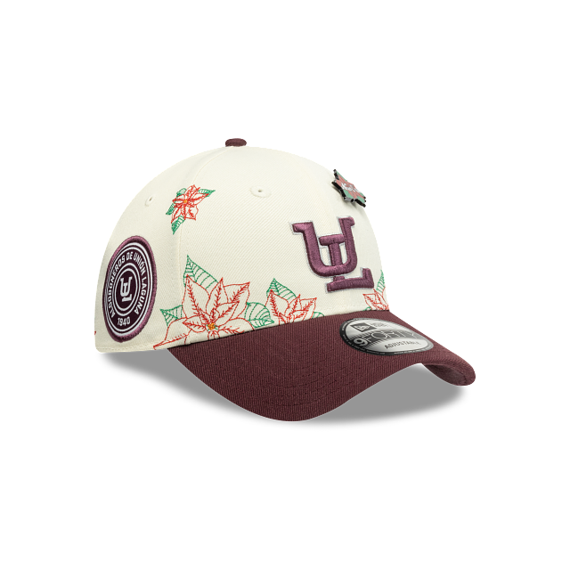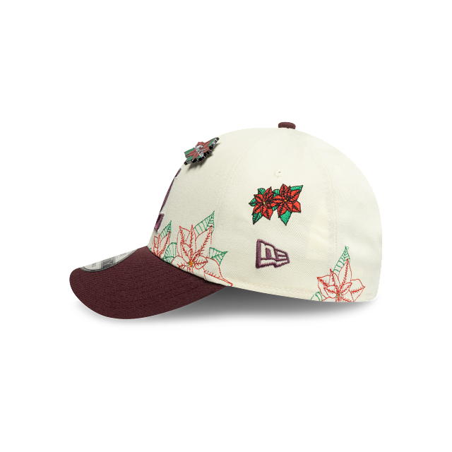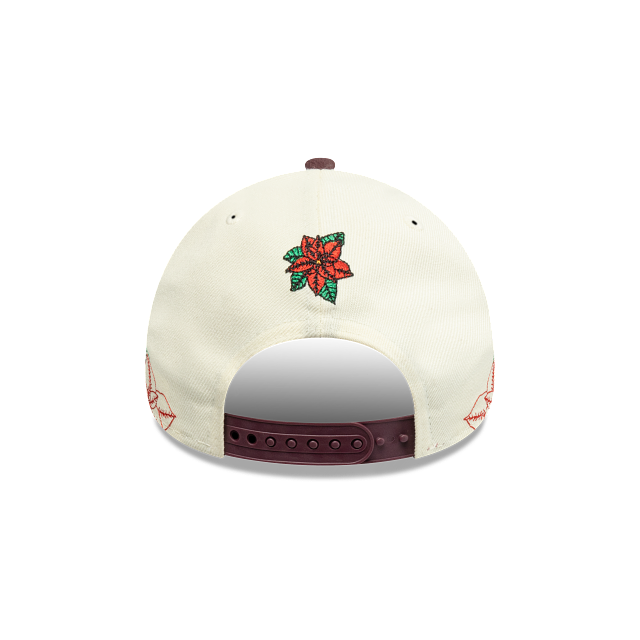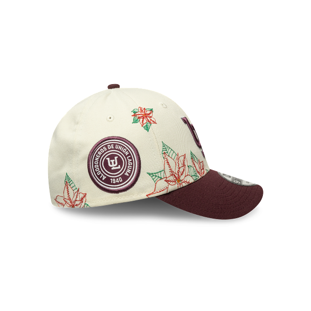 Esta gorra curva New Era 9FORTY de Algodoneros de Unión Laguna de la colección LMB Nochebuena presenta un diseño con el logotipo de los Algodoneros bordado en los paneles frontales junto con un pin en forma de flor de nochebuena, hojas de nochebuena en toda la corona, un parche representativo del equipo del lado derecho y el flag de New Era bordado del lado izquierdo. Cómprala ya.