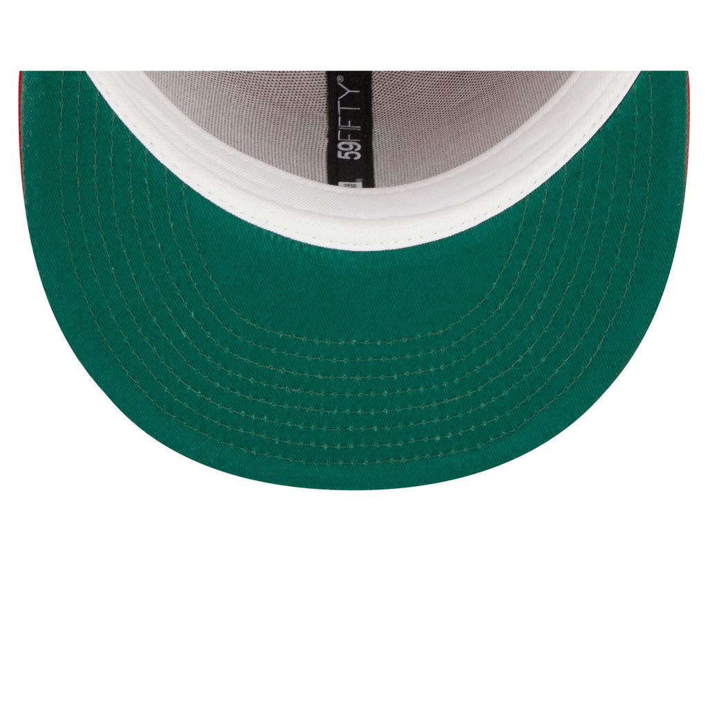 Esta gorra New Era 59FIFTY de Angeles Angels de la colección MLB Sidepatch Laurel presenta el logo de los Angels bordado en los paneles frontales, un sidepatch conmemorativo del equipo con detalles de laurele al rededor, visera plana y undervisor en color verde. Luce con estilo y añade esta gorra a tu carrito.