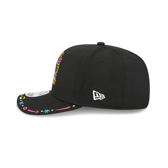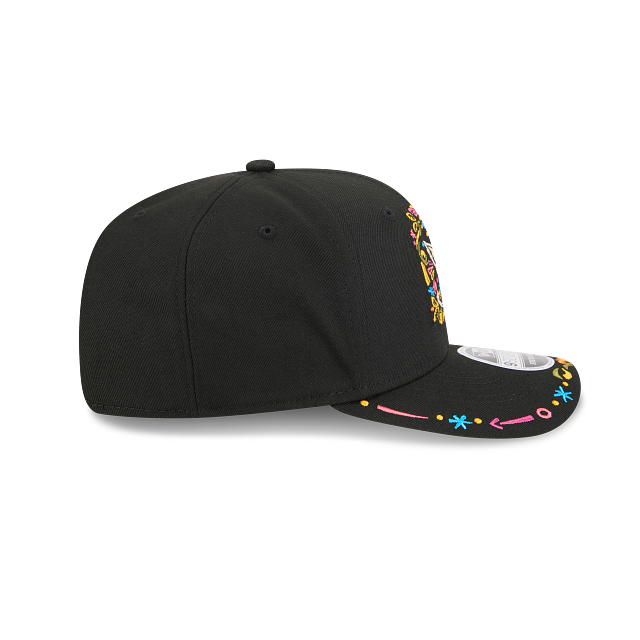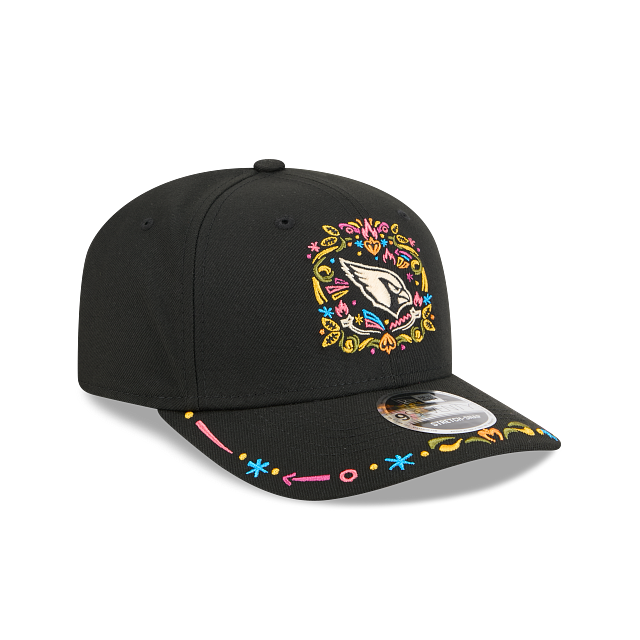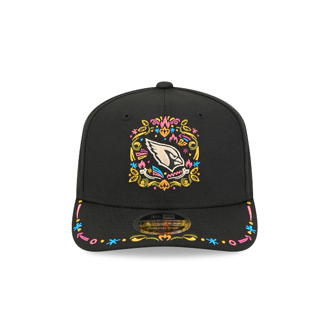 Esta gorra curva New Era 9SEVENTY Stretch Snap de Arizona Cardinals de la colección NFL Hasta la Muerte presenta un diseño inspirado en el Día de Muertos, el logotipo de los Cardinals bordado en los paneles frontales, el logo de la NFL en la parte de atrás y el flag de New Era bordado del lado izquierdo. Cómprala ya.