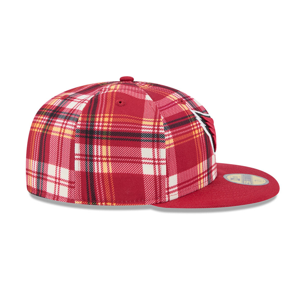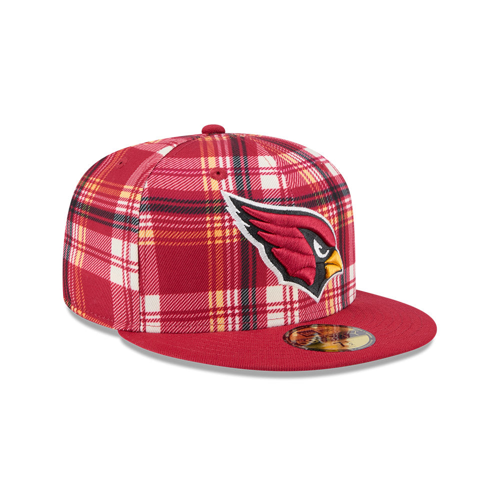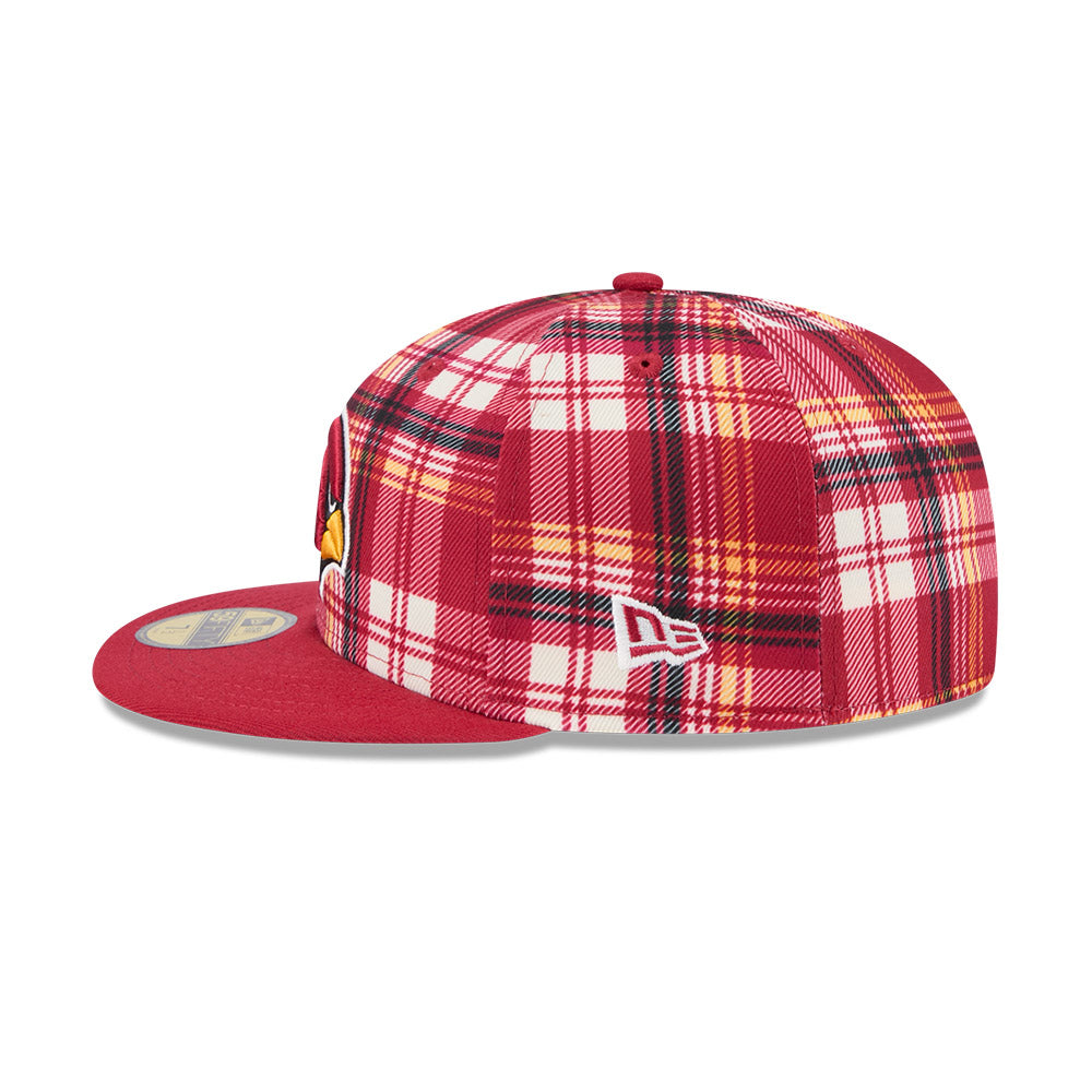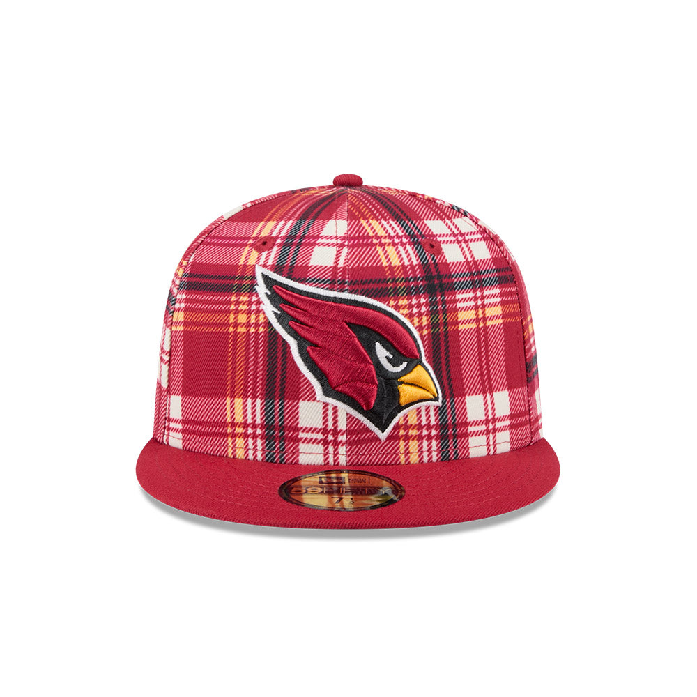 Esta gorra plana New Era 59FIFTY de Arizona Cardinals de la colección NFL Sideline 2024 presenta un diseño a cuadros con el logotipo de los Cardinals bordado en los paneles frontales y el flag de New Era bordado en el lado izquierdo. Cómprala ya.