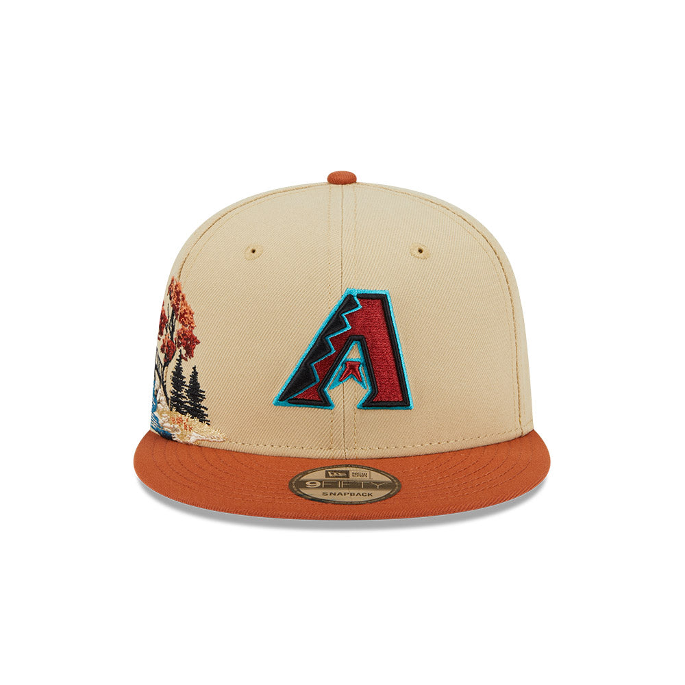 Esta gorra plana New Era 9FIFTY de Arizona Diamondbacks de la colección MLB Fall Landscape presenta un diseño inspirado en la estación de otoño con el logotipo de los Diamondbacks bordado en los paneles frontales, un paisaje otoñal del lado derecho y el flag de New Era bordado del lado izquierdo. Cómprala ya.