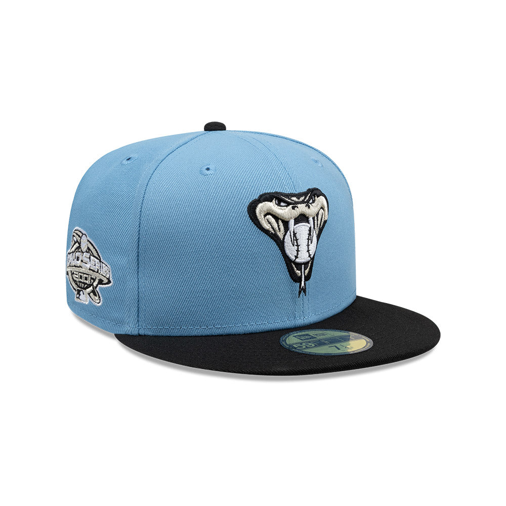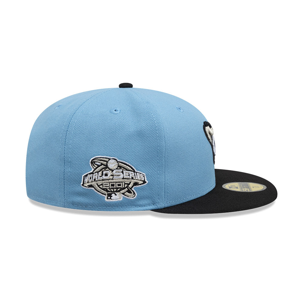 Esta gorra plana New Era 59FIFTY de Arizona Diamondbacks de la colección MLB Sky Blue Black presenta un diseño con la corona en color azul y el visor en color negro, el logotipo de los Diamondbacks bordado en los paneles frontales, el MLB Batterman al reverso y el flag de New Era bordado del lado izquierdo. Cómprala ya.