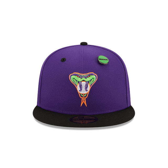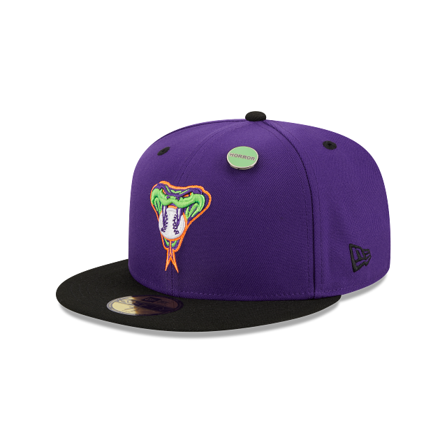 Esta gorra New Era 59FIFTY de Arizona Diamondbacks de la colección MLB Trick or Treat Collection presenta un diseño estilo Halloween en color morado que contrasta con el logotipo de los Diamondbacks bordado al frente, un parche conmemorativo del lado derecho, un pin especial y el flag de New Era del lado izquierdo. Apoya a tu equipo y cómprala ya.