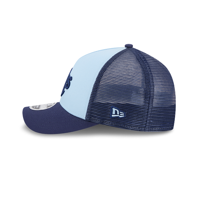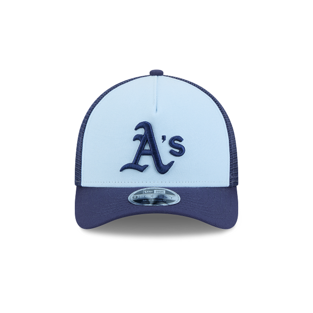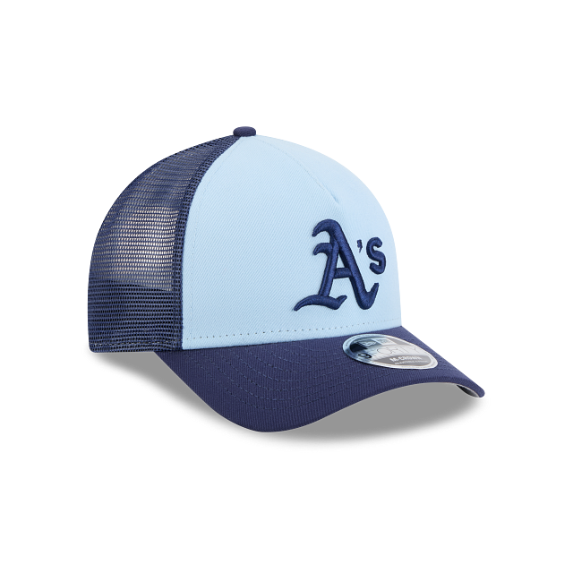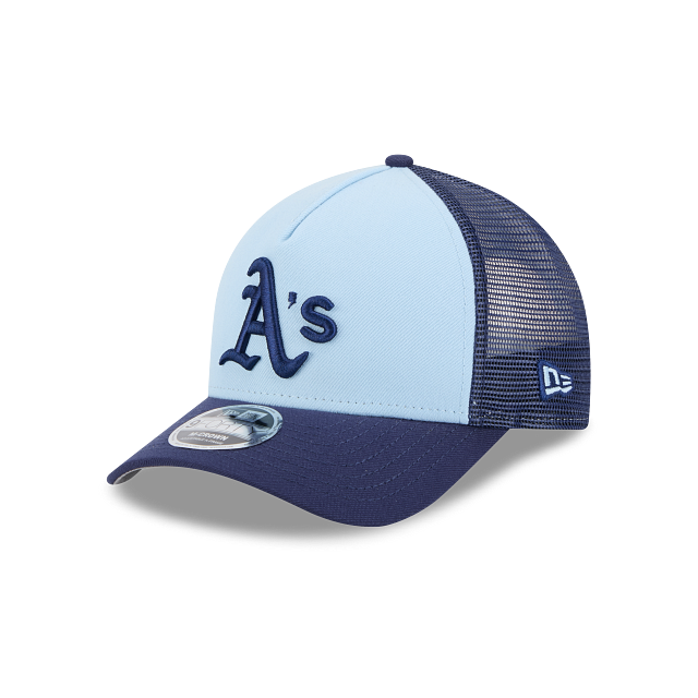 Esta gorra curva New Era 9FORTY M-Crown A-Frame de Athletics de la colección MLB Color Pack presenta un diseño en color azul con el logotipo de los Athletics bordado en los paneles frontales, malla trucker al reverso y el flag de New Era bordado del lado izquierdo. Cómprala ya.