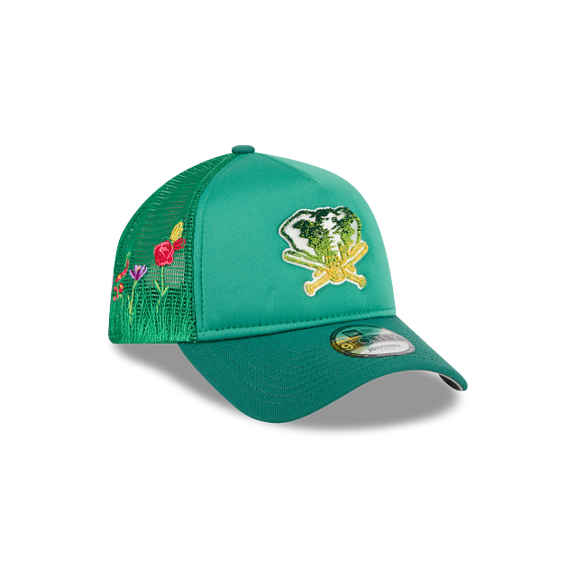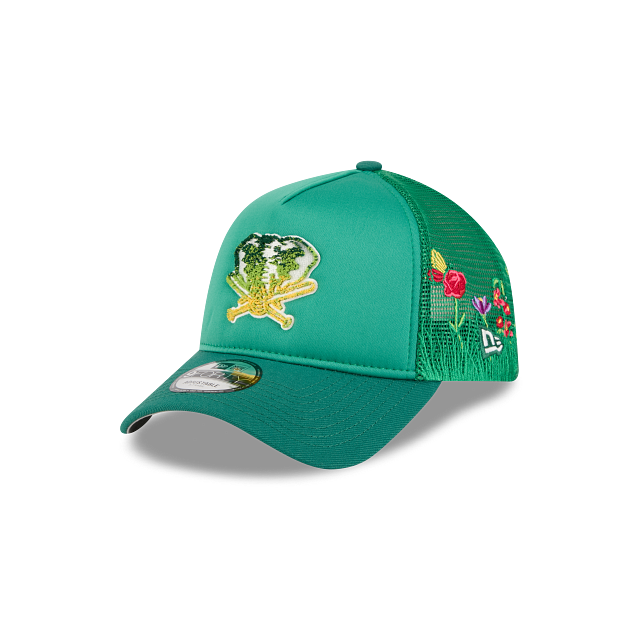 Esta gorra curva New Era 9FORTY A-Frame de Athletics de la colección MLB Gradient Logo presenta el logotipo de los Athletics en chenille en el panel frontal de espuma, malla trucker con flores de jardín bordadas en la parte de atrás y el flag de New Era bordado del lado izquierdo. Cómprala ya.