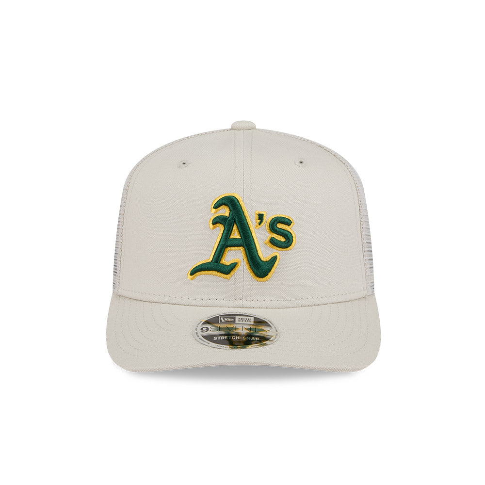 Esta gorra curva New Era 9SEVENTY Stretch Snap de Athletics de la colección MLB Trucker Canvas presenta el logotipo de los Athletics bordado en los paneles frontales, malla trucker al reverso y el flag de New Era bordado del lado izquierdo. Cómprala ya.