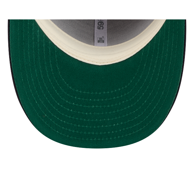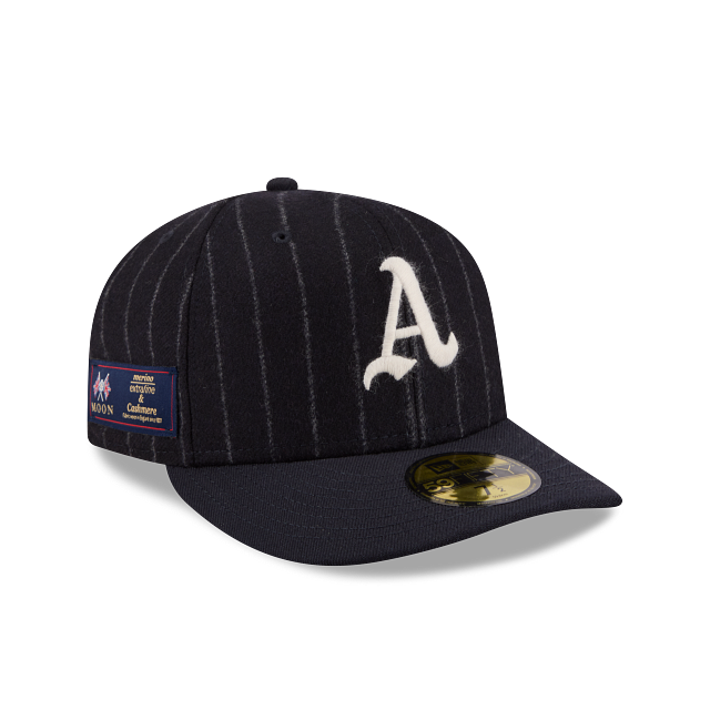 Esta gorra precurveada New Era 59FIFTY de Athletics de la colección Moon X MLB presenta una confección en lana con diseño pinstripe, el logotipo de los Athletics bordado en los paneles frontales, etiqueta Moon del lado derecho, el MLB Batterman en la parte de atrás y el flag de New Era bordado del lado izquierdo. Cómprala ya.