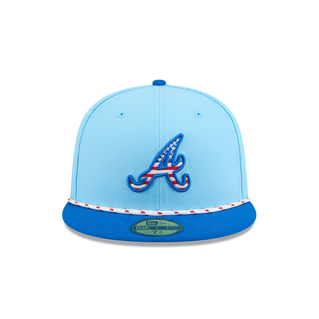 Esta gorra plana New Era 59FIFTY de Atlanta Braves de la colección MLB 4TH of July presenta una corona en color azul con el logotipo de los Braves con estrellas y líneas de la bandera de Estados Unidos bordado en los paneles frontales, una cuerda trenzada en el visor, el MLB Batterman al reverso y el flag de New Era bordado del lado izquierdo. Cómprala ya.