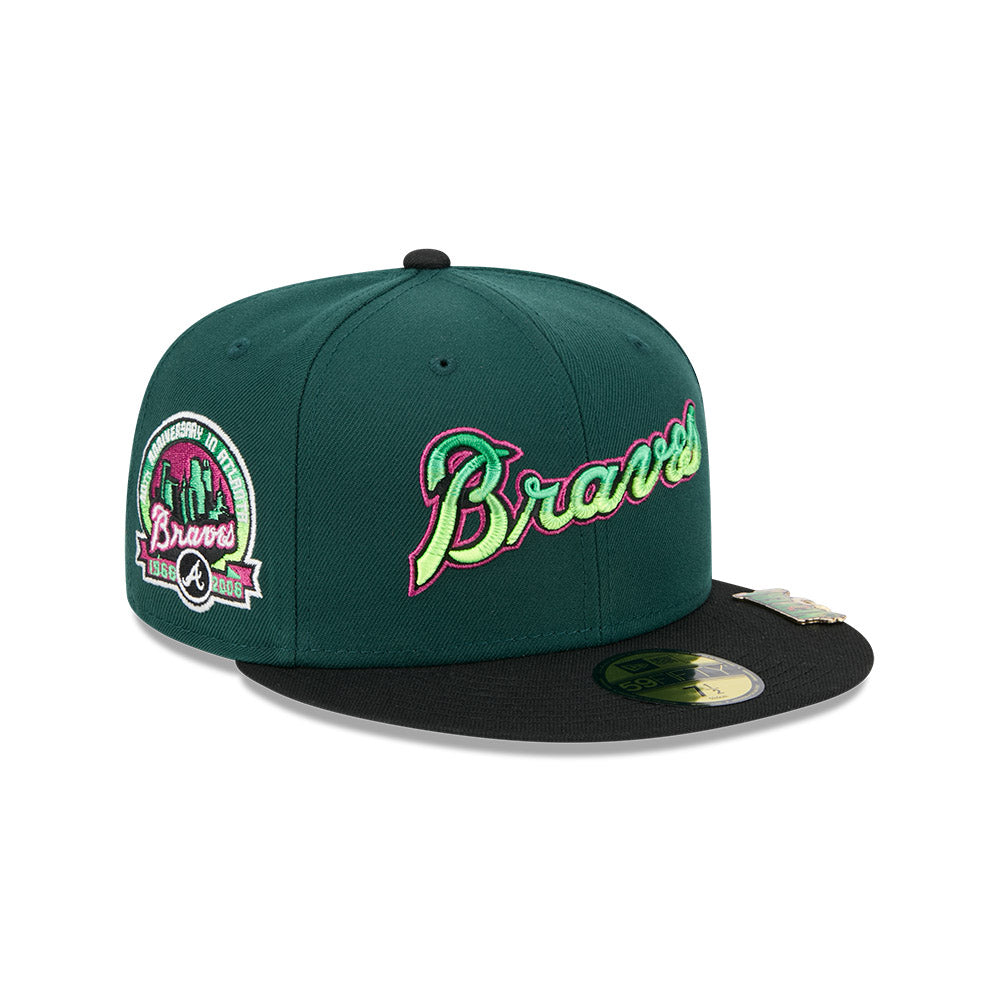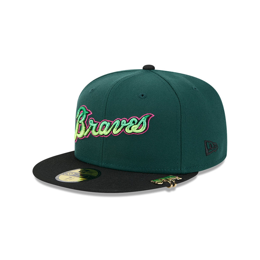 Esta gorra plana New Era 59FIFTY de Atlanta Braves de la colección MLB Crawlers presenta un diseño con el nombre de los Braves bordado en los paneles frontales, parche representativo del lado derecho, clip de la colección en el visor, el MLB Batterman al reverso y el flag de New Era bordado del lado izquierdo. Cómprala ya.