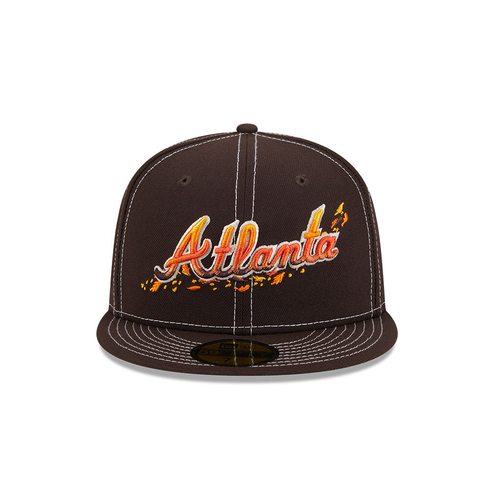 Esta gorra plana New Era 59FIFTY de Atlanta Braves de la colección MLB Fall Foliage presenta un diseño inspirado en la estación de otoño con el nombre de los Braves bordado en los paneles frontales, un parche conmemorativo del lado derecho, el MLB Batterman al reverso y el flag de New Era bordado del lado izquierdo. Cómprala ya.