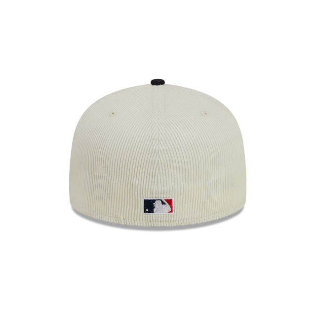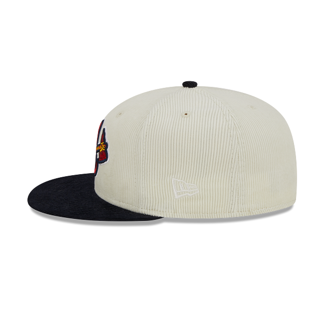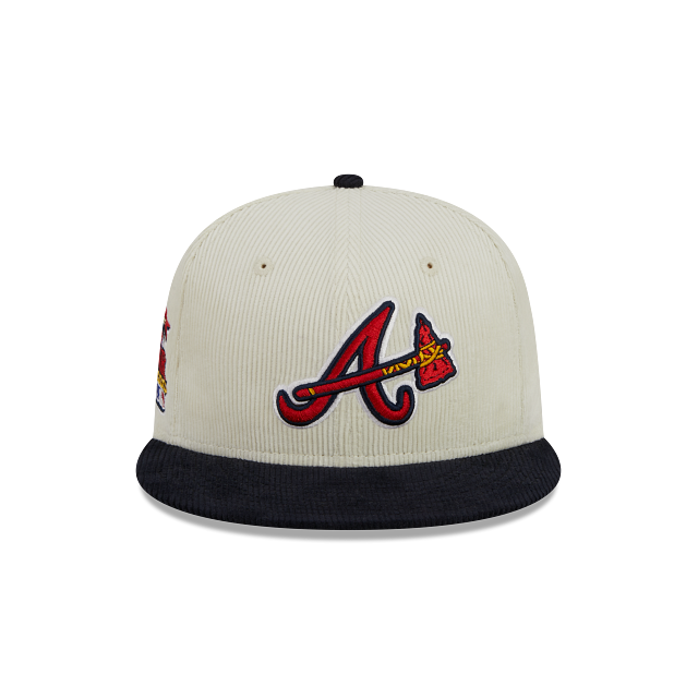 Esta gorra plana New Era 59FIFTY de Atlanta Braves de la colección MLB LDS Program presenta una confección en pana con la corona en color blanco, el logotipo de los Braves bordado en los paneles frontales, parche World Series del lado derecho, el MLB Batterman en la parte de atrás y el flag de New Era bordado del lado izquierdo. Cómprala ya.