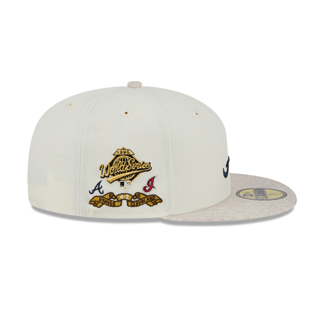 Esta gorra New Era 59FIFTY de Atlanta Braves de la colección MLB Logo Select presenta un elegante diseño en color blanco con el logotipo retro de los Braves bordado en los paneles frontales, un parche conmemorativo del lado derecho, el MLB Batterman al reverso y el flag de New Era bordado en el lado izquierdo. Luce con estilo. Cómprala ya.