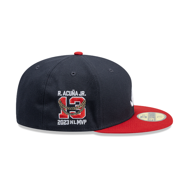 Esta gorra plana New Era 59FIFTY de Atlanta Braves de la colección MLB MVP presenta el logotipo de los Braves bordado en los paneles frontales, nombre y número 13 de Ronald Acuña Jr. del lado derecho, el MLB Batterman en la parte de atrás y el flag de New Era bordado del lado izquierdo. Cómprala ya.