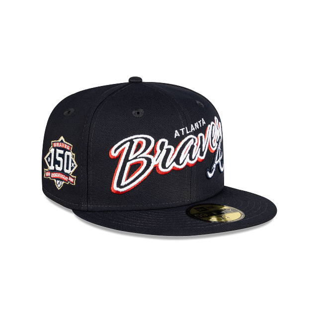 Esta gorra plana New Era 59FIFTY de Atlanta Braves de la colección MLB Script Sided presenta un diseño con el nombre y logotipo de los Braves bordados en los paneles frontales, un parche conmemorativo del lado derecho, el MLB Batterman en la parte de atrás y el flag de New Era bordado del lado izquierdo. Luce con estilo y cómprala ya.