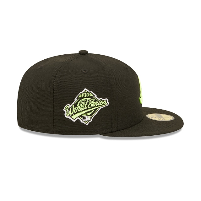Esta gorra New Era 59FIFTY de Atlanta Bravesde la colección MLB Summer Pop presenta un logo de los Braves en color neón bordado en los paneles frontales con un parche de World Series en el lado derecho y un logotipo de MLB Batterman en la parte trasera. Detalles adicionales incluyen una undervisor con estampado de piel de serpiente. Cómprala ya.
