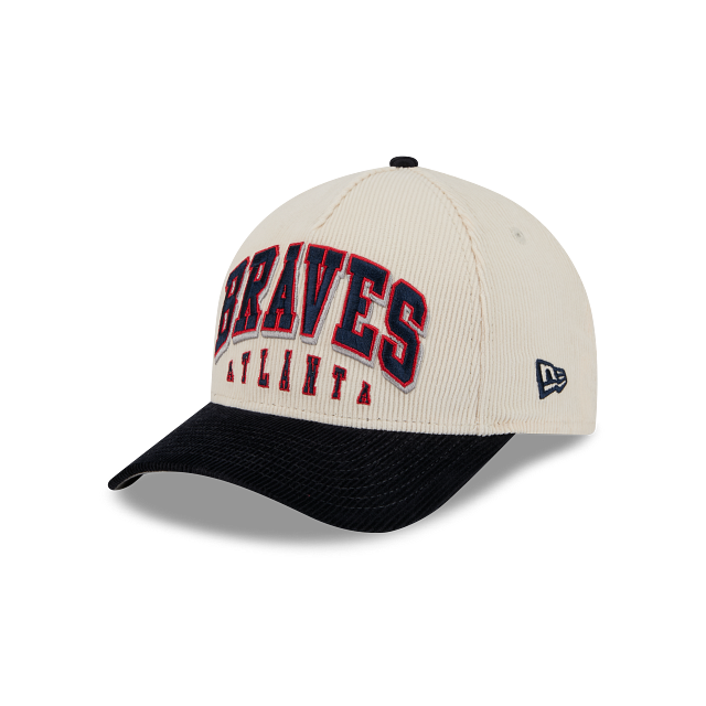 Esta gorra curva New Era 9FORTY M-Crown A-Frame de Atlanta Braves de la colección MLB Two Tone Cord presenta una confección en pana con el nombre de los Braves bordado en el panel frontal, el logo del equipo del lado derecho y el flag de New Era bordado del lado izquierdo. Cómprala ya.