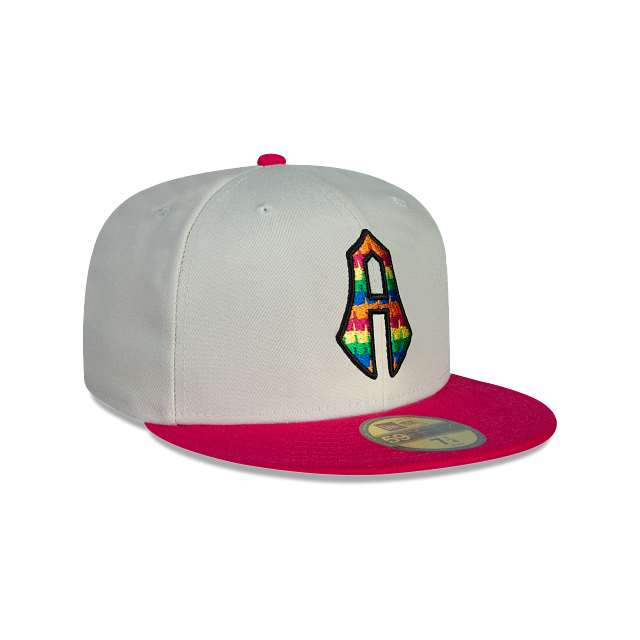 Esta gorra New Era 59FIFTY de Atlas de Guadalajara de la colección Piñata Collection presenta una corona blanca con el logotipo del Atlas bordado en los paneles frontales, el nombre al reverso, visera rosa con undervisor de piñata y el flag de New Era bordado en el lado izquierdo. Apoya a tu equipo y cómprala ya.