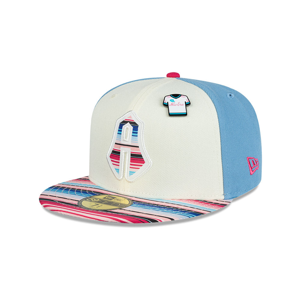 Esta gorra plana New Era 59FIFTY de Atlas de Guadalajara de la colección Futbol Mexicano Sarape presenta el logotipo del Atlas bordado en los paneles frontales, el visor con un diseño inspirado en los colores y patrones tradicionales del sarape, el nombre del equipo al reverso, un pin en forma de Jersey y el flag de New Era bordado del lado izquierdo. Cómprala ya.