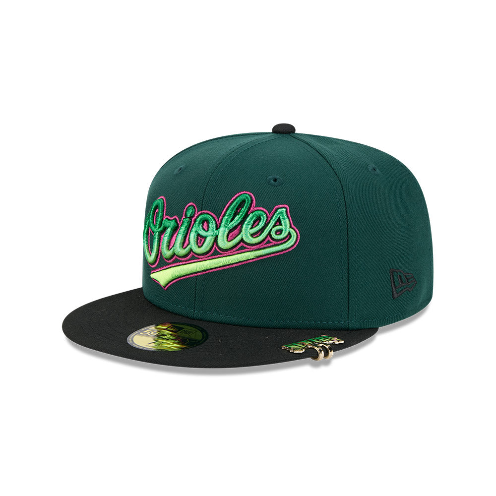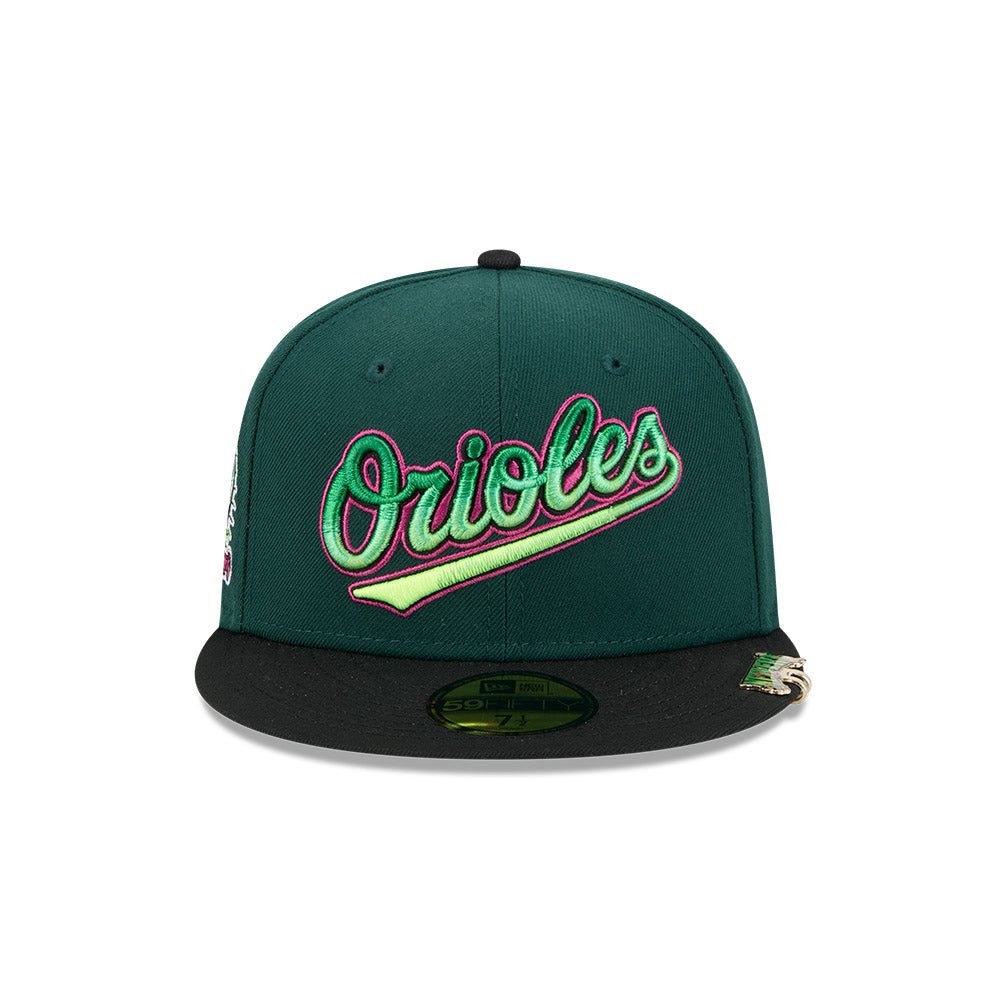 Esta gorra plana New Era 59FIFTY de Baltimore Orioles de la colección MLB Crawlers presenta un diseño con el nombre de los Orioles bordado en los paneles frontales, parche representativo del lado derecho, clip de la colección en el visor, el MLB Batterman al reverso y el flag de New Era bordado del lado izquierdo. Cómprala ya.