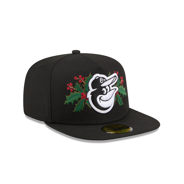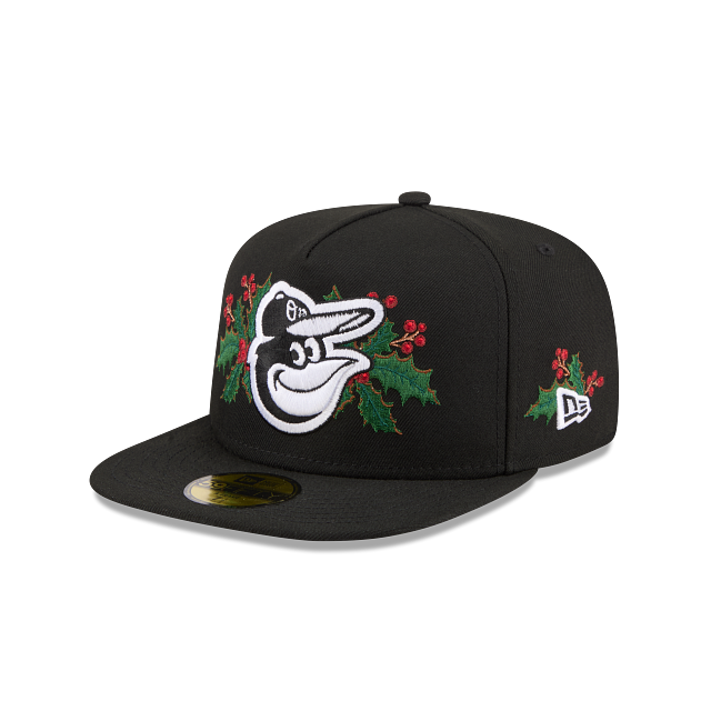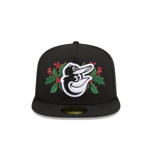 Esta gorra plana New Era 59FIFTY A-Frame de Baltimore Orioles de la colección MLB Holly presenta el logotipo de los Orioles con la planta de acebo bordado en el panel frontal, el MLB Batterman en la parte de atrás y el flag de New Era bordado del lado izquierdo. Cómprala ya.