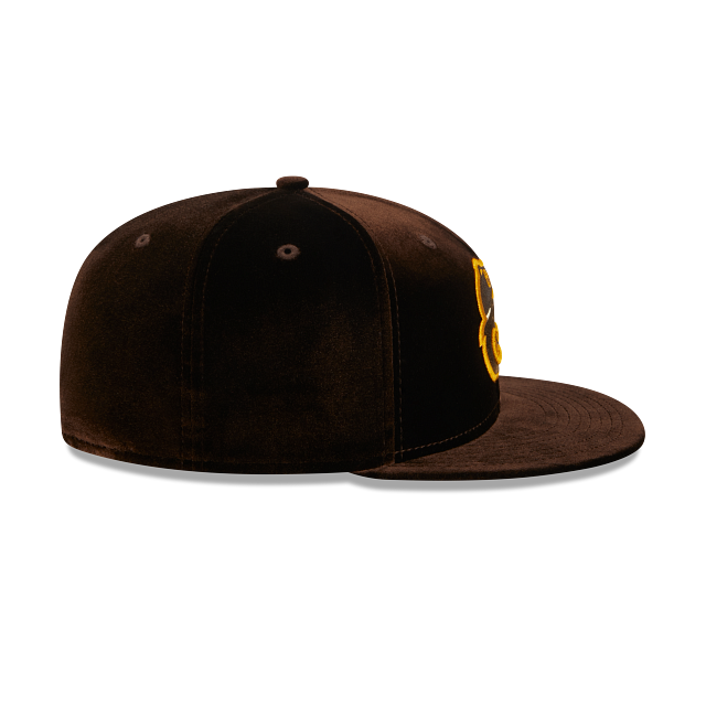 Una aplicación en terciopelo es lo que la hace única. Esta gorra New Era 59FIFTY de Baltimore Orioles de la colección MLB Vintage Velvet presenta el logotipo de los Orioles bordado en los paneles frontales, el logo de la MLB al reverso, el undervisor en verde y el flag de New Era bordado en el lado izquierdo. Luce con estilo y cómprala ya.