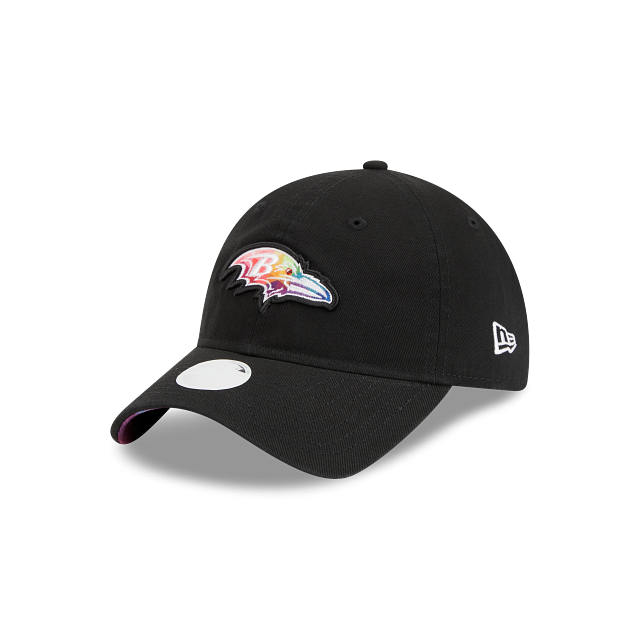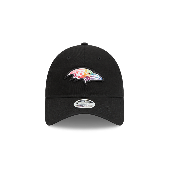 Esta gorra New Era 9TWENTY para Mujer de Baltimore Ravens de la colección NFL Crucial Catch 2023 presenta un diseño totalmente negro que contrasta con el logotipo de los Ravens y el undervisor con toques multicolor, y el flag de New Era bordado en el lado izquierdo. Apoya a tu equipo y cómprala ya.