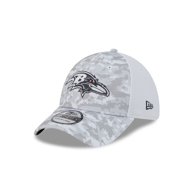 Esta gorra curva New Era 39THIRTY de Baltimore Ravens de la colección NFL Salute to Service 2024 presenta un diseño de camuflaje con el logotipo de los Ravens bordado en los paneles frontales, la bandera de Estados Unidos del lado derecho, el logo de la NFL al reverso y el flag de New Era bordado del lado izquierdo. Apoya a tu equipo y cómprala ya.