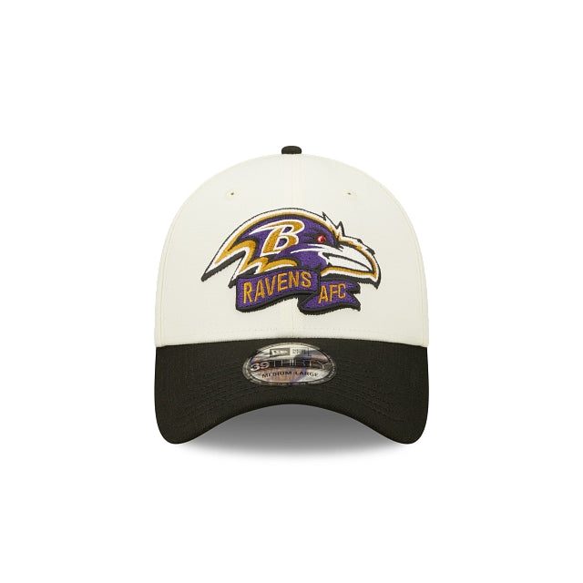 La temporada de la NFL ya esta aquí. Representa a tu equipo con esta gorra New Era 39THIRTY de Baltimore Ravens NFL Sideline 2022 la cual presenta el logo del equipo bordado en los paneles frontales a juego con una bandera con el nombre y su conferencia, un parche de la NFL en el lado derecho y un logo del equipo en la parte trasera. Cómprala ya.